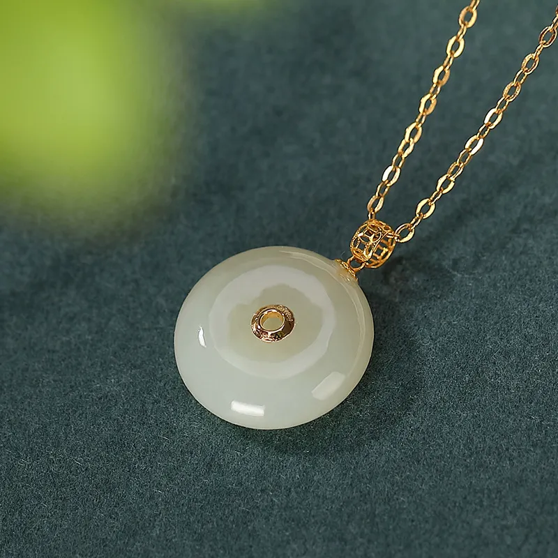 衣都精品- 2022冬季新款18K金鑲嵌和田玉銅錢吊墜