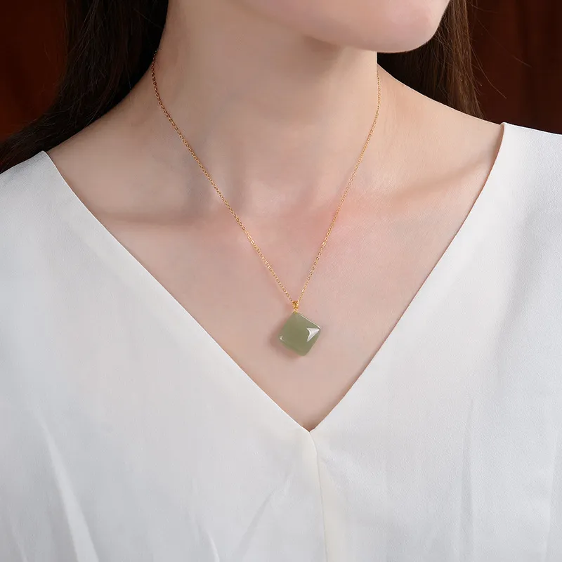 衣都精品- 2022冬季新款18K金鑲嵌青玉水滴形吊墜