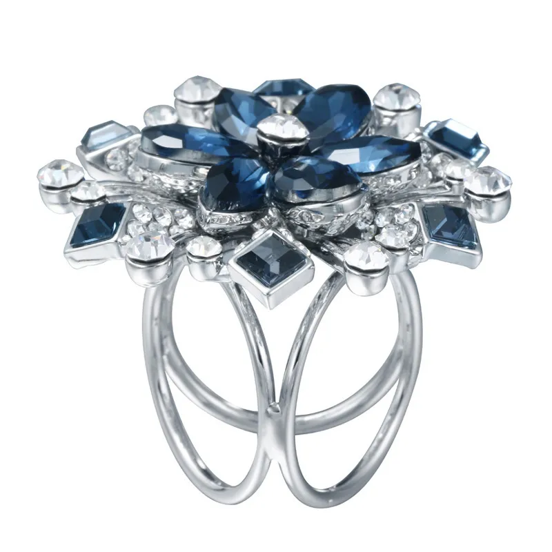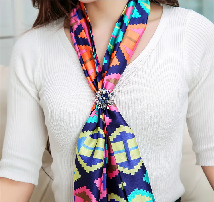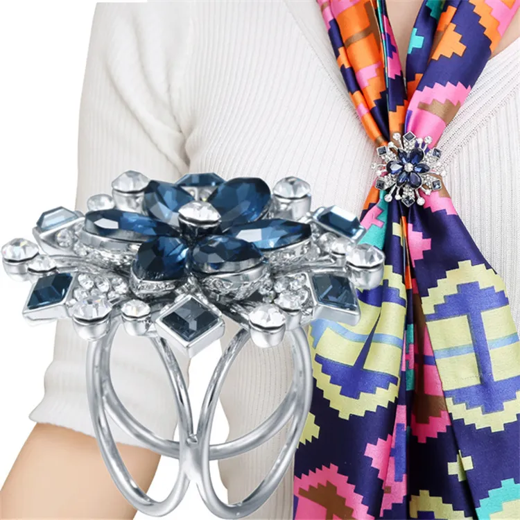 衣都精品- 2022冬季新款韓版萊茵石藍色花朵絲巾扣