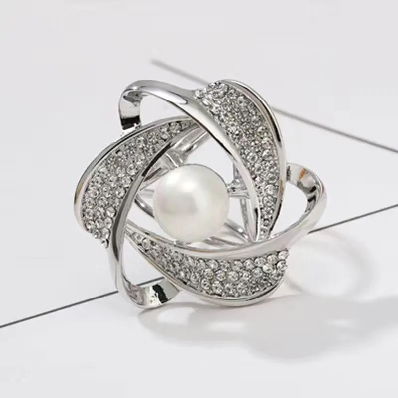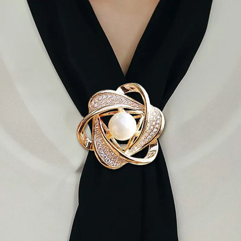 衣都精品- 2022冬季新款韓版水晶胸花百搭雪花絲巾扣