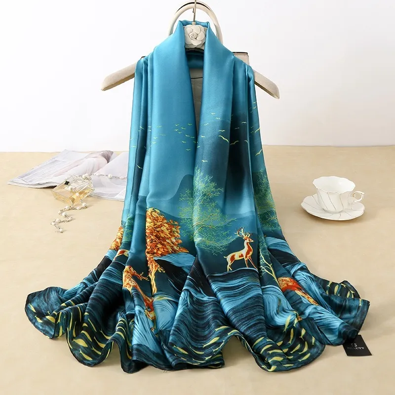 衣都精品- 2022冬季新款氣質百搭絲緞圍巾披肩