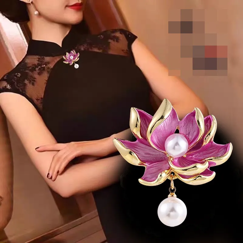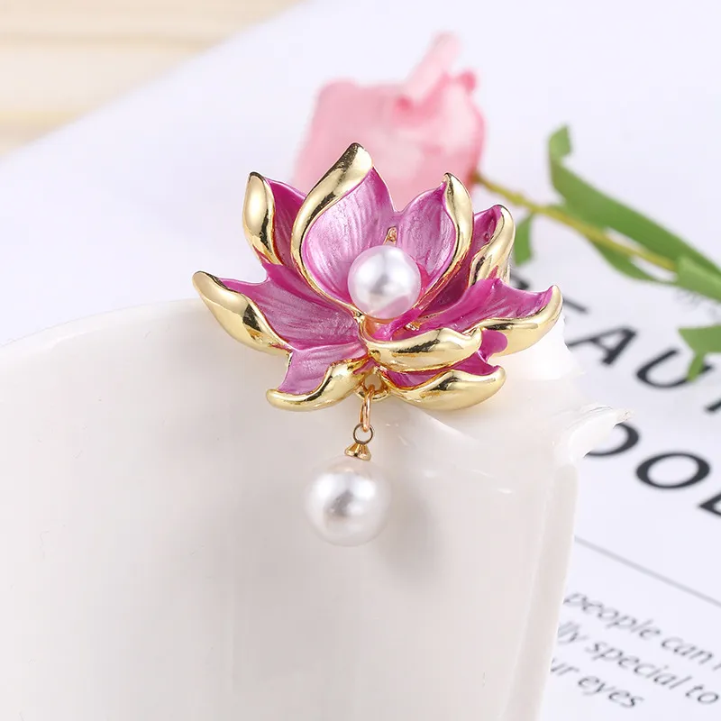 衣都精品- 2022冬季新款簡約大氣蓮花時尚珍珠胸針