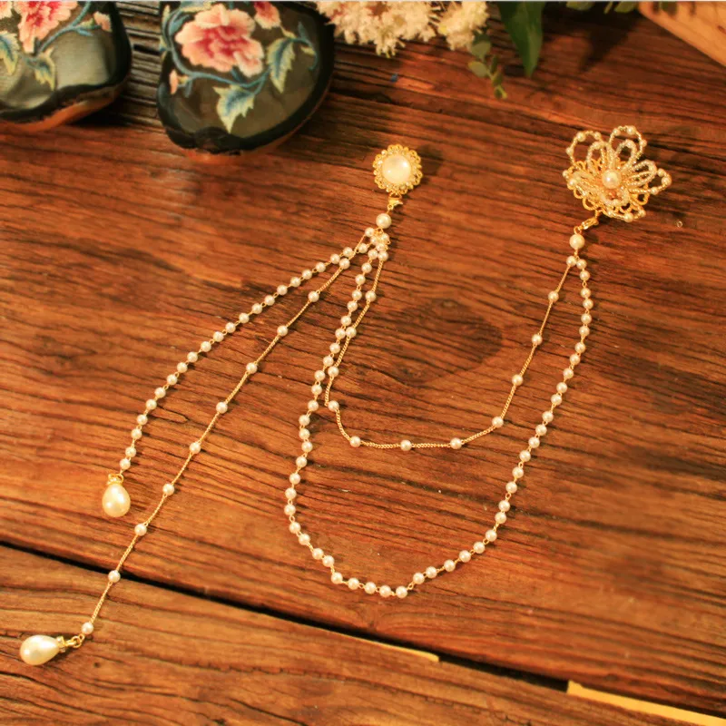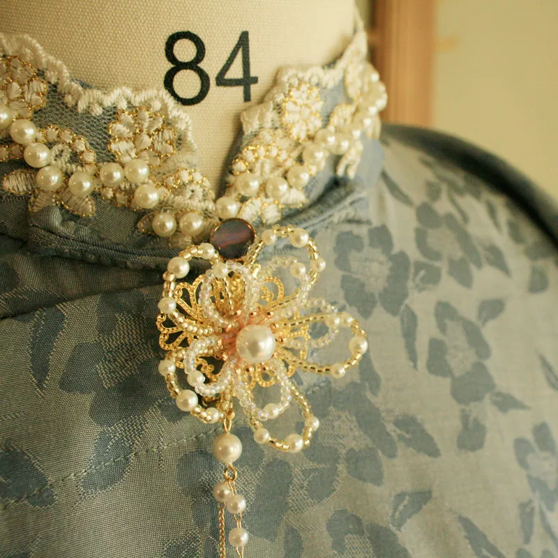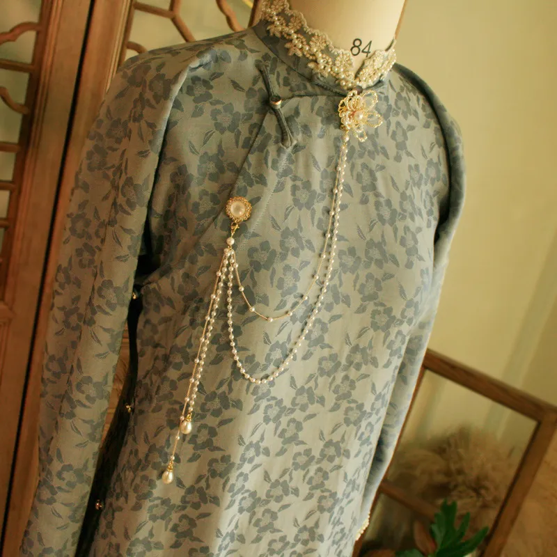 衣都精品- 2022冬季新款手作旗袍壓襟珍珠鏈條流蘇胸針