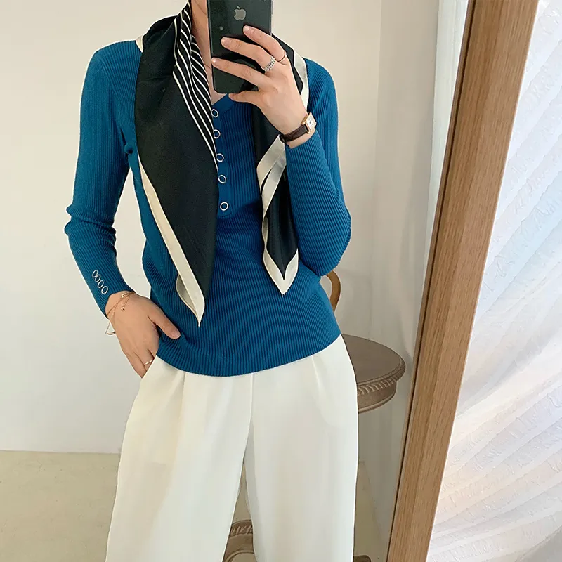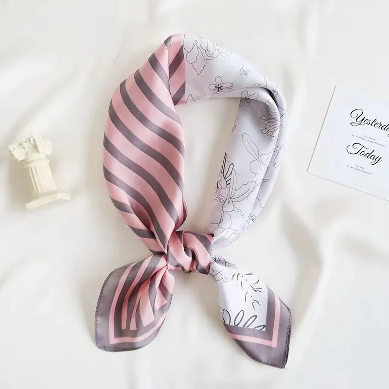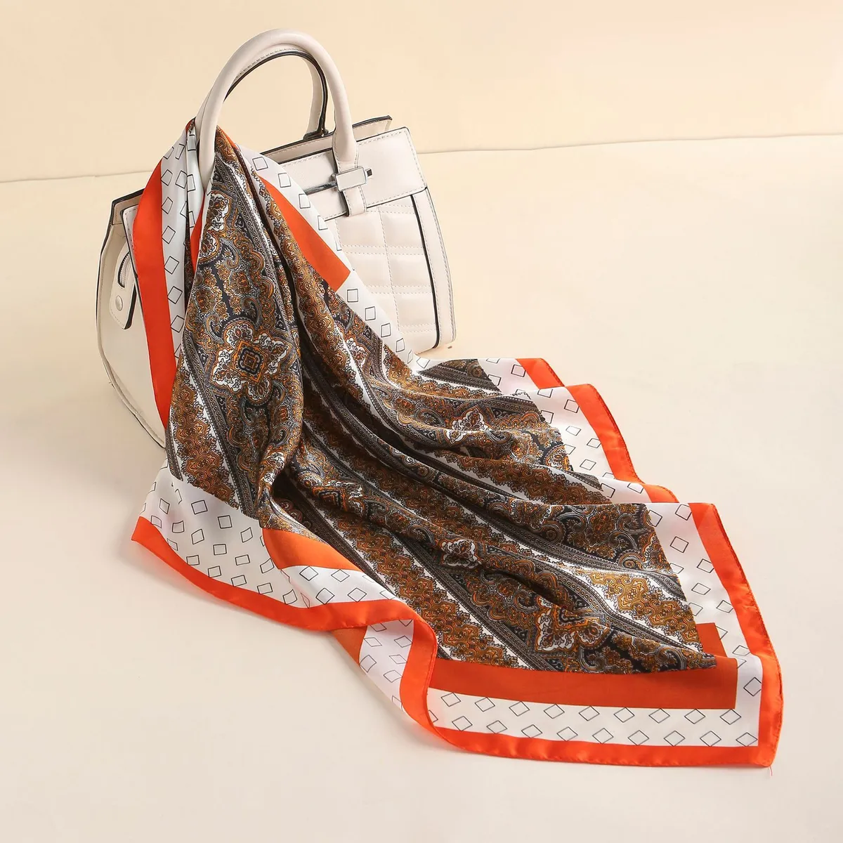 衣都精品- 2022冬季新款韓版緞面印花仿真絲方巾