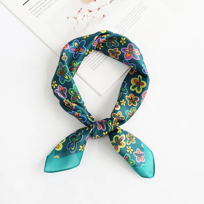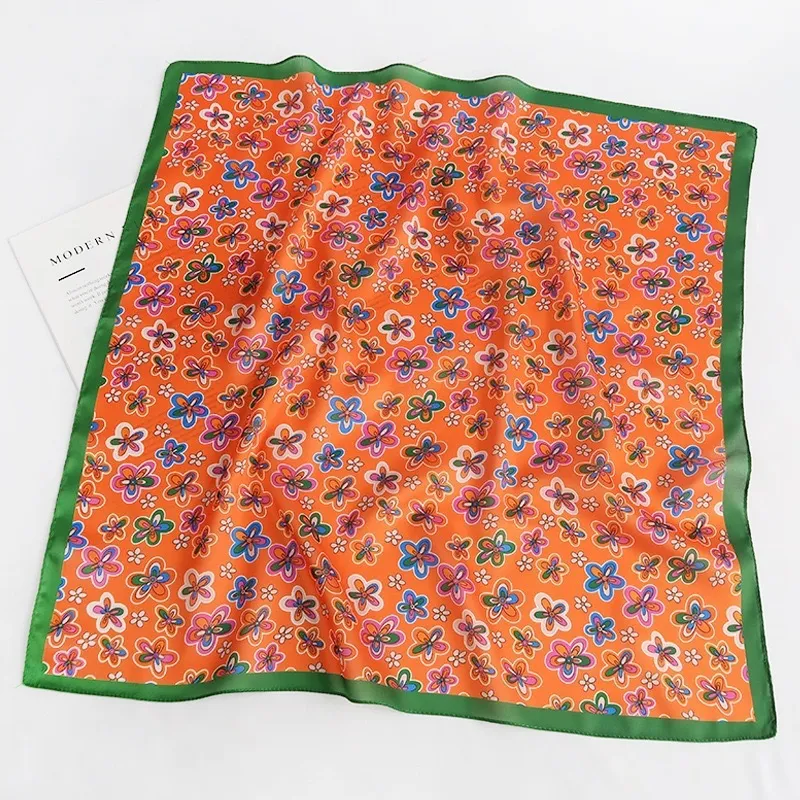 衣都精品- 2022冬季新款韓版緞面印花仿真絲方巾