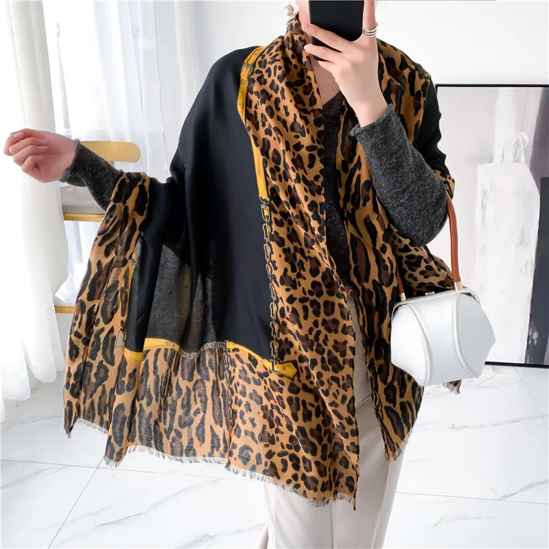 衣都精品- 2022春秋新款韓版薄款個性拼接豹紋時尚圍巾