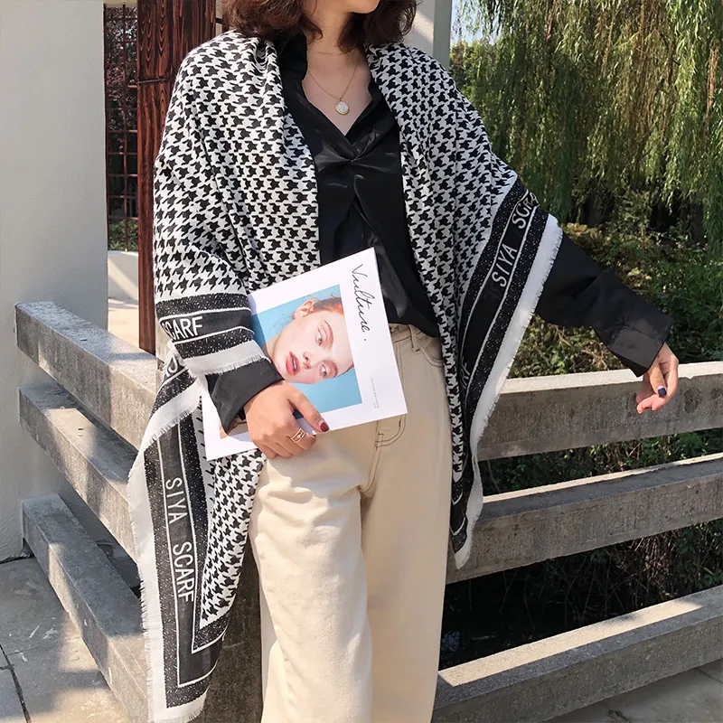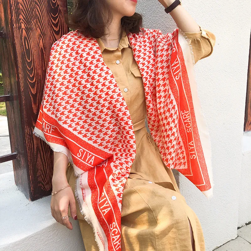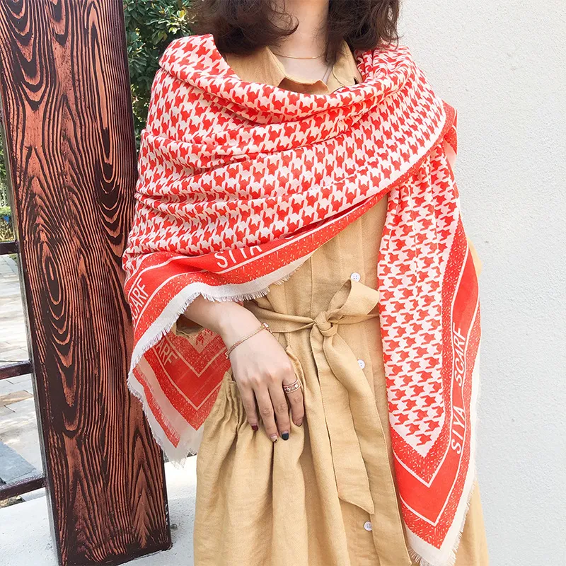 衣都精品- 2023新款名媛千鳥格印花大方巾