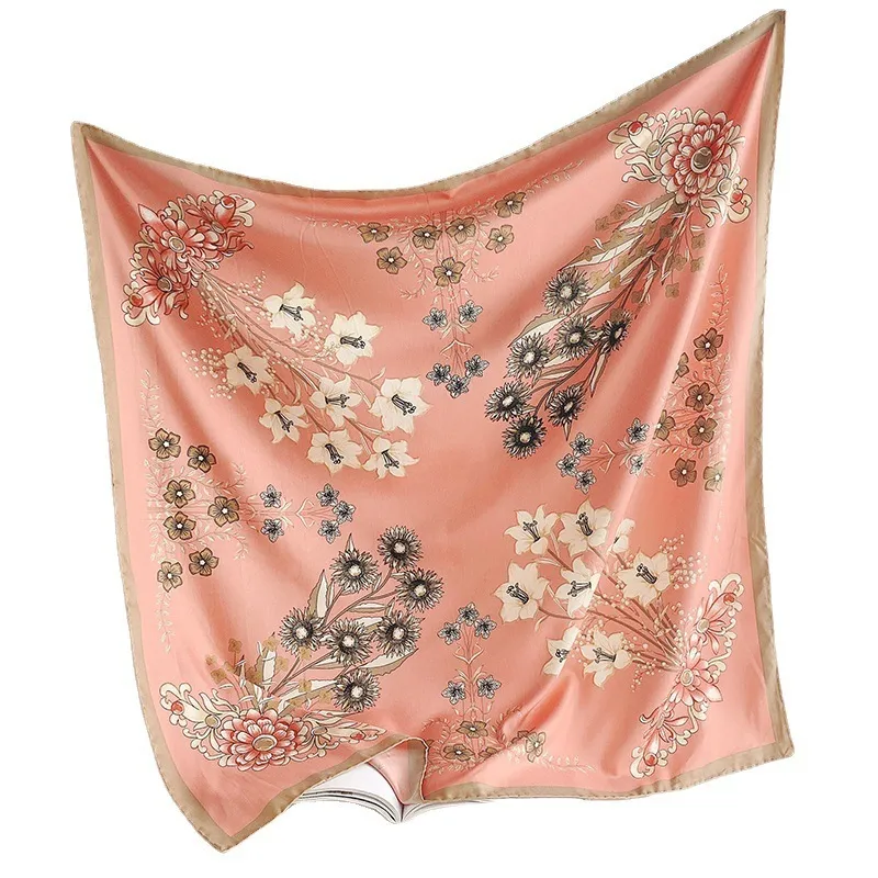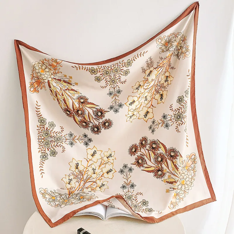 衣都精品- 2023新款仿真絲花卉印花斜紋絲巾