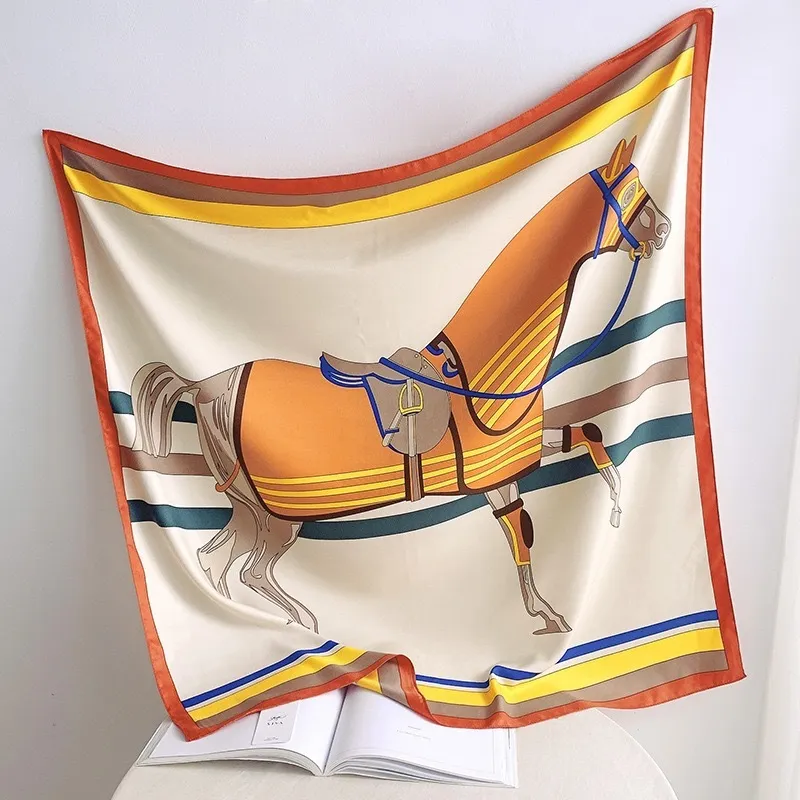 衣都精品- 2023新款時尚駿馬印花仿真絲絲巾