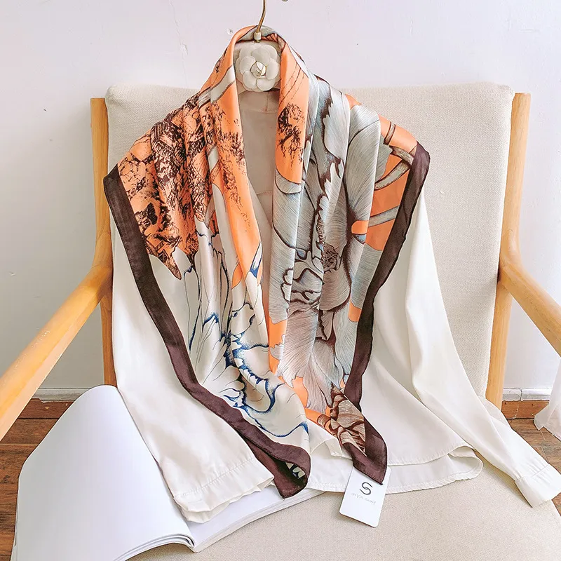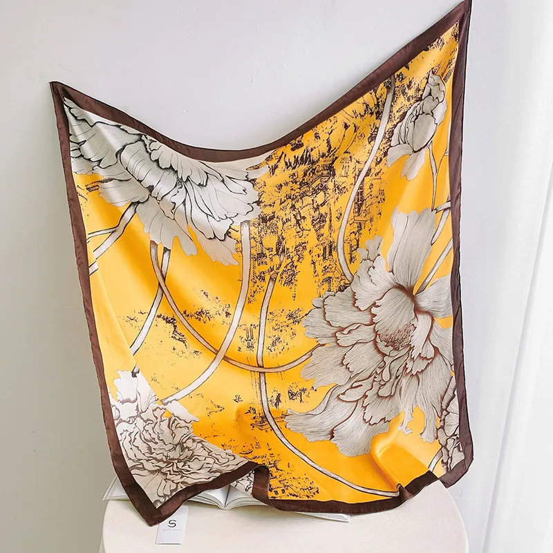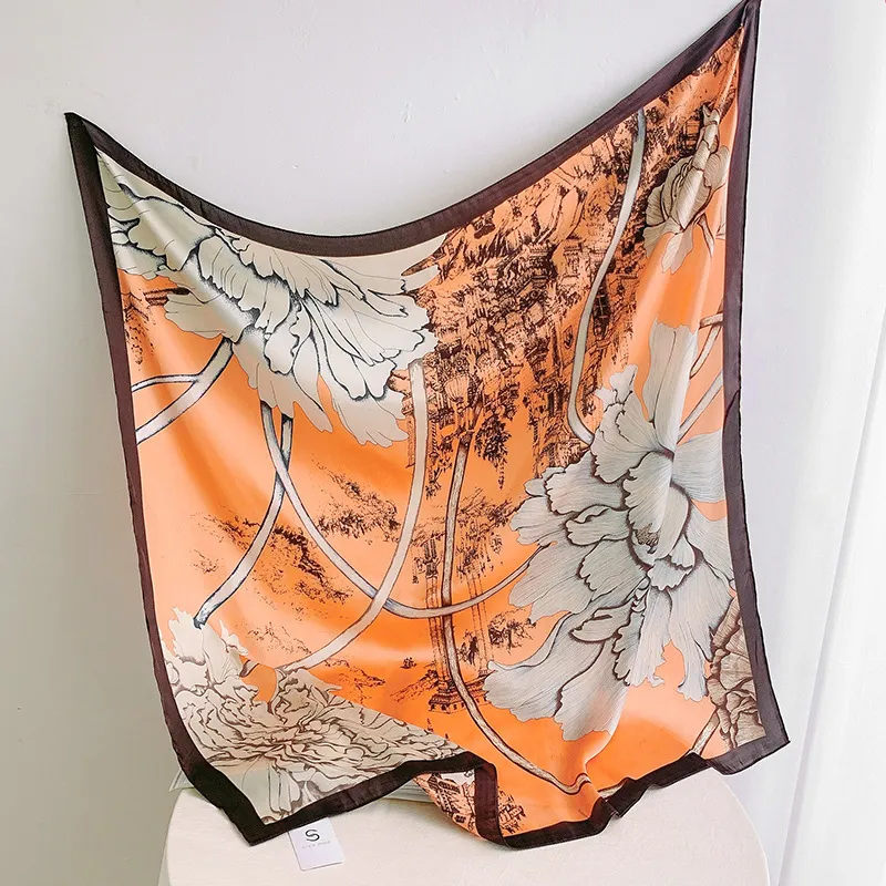 衣都精品- 2023新款素雅氣質牡丹印花仿真絲絲巾