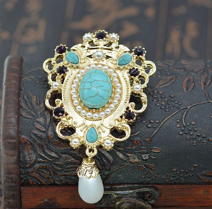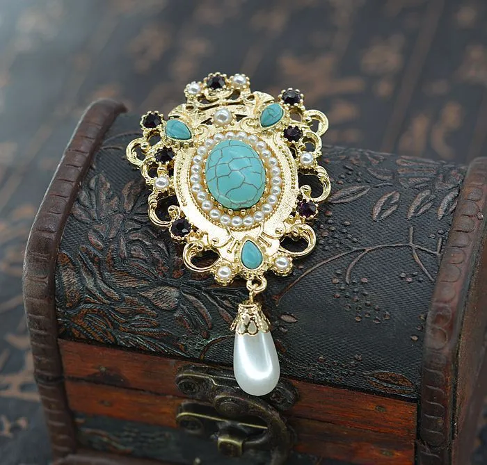 衣都精品- 2023新款復古巴羅克綠松石珍珠胸針