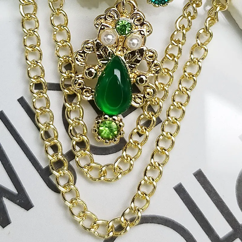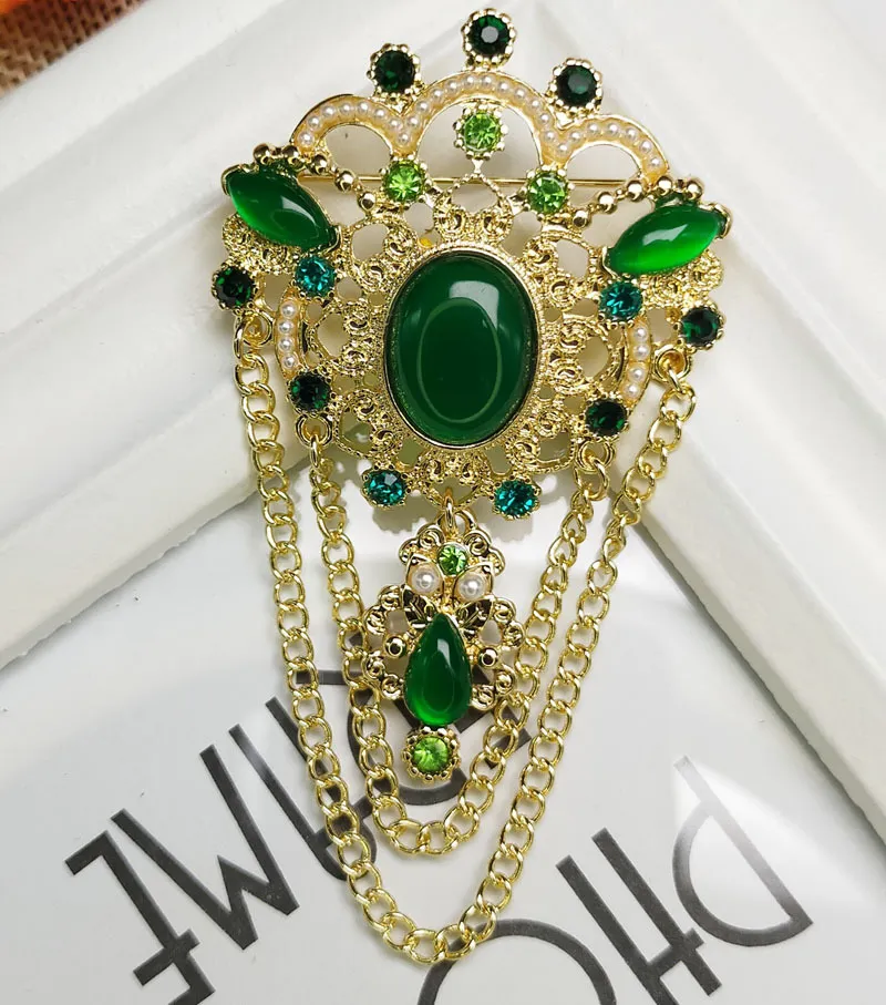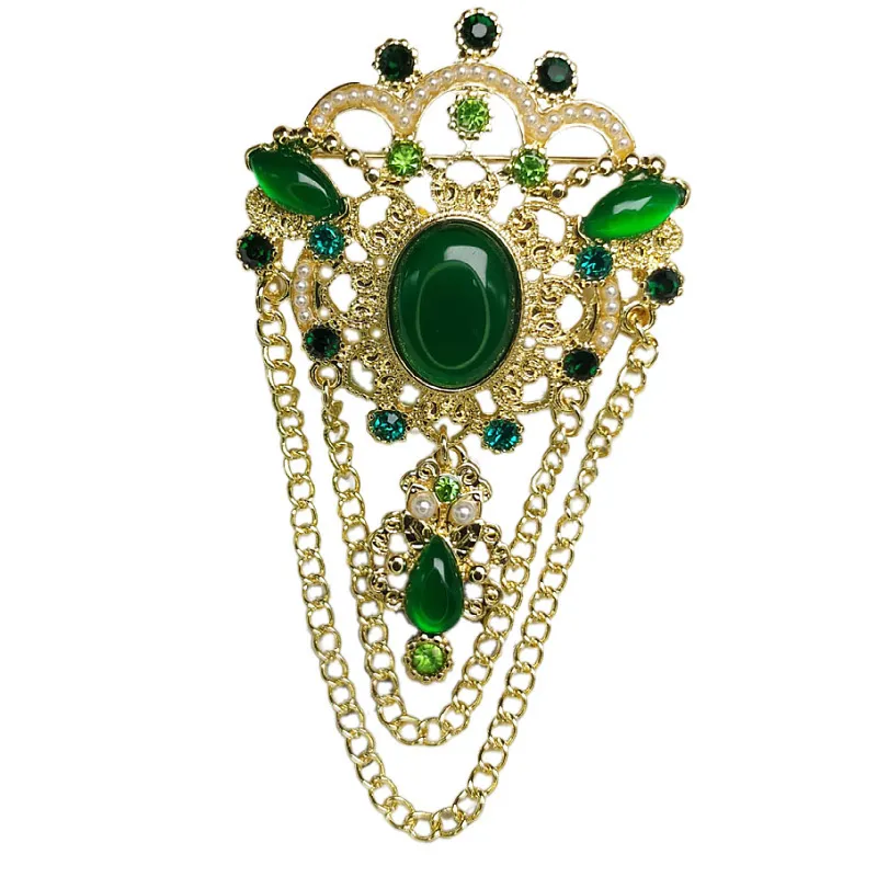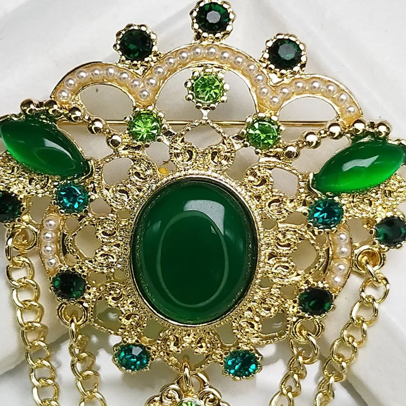 衣都精品- 2023新款雙層鏈子流蘇綠樹脂寶石胸針
