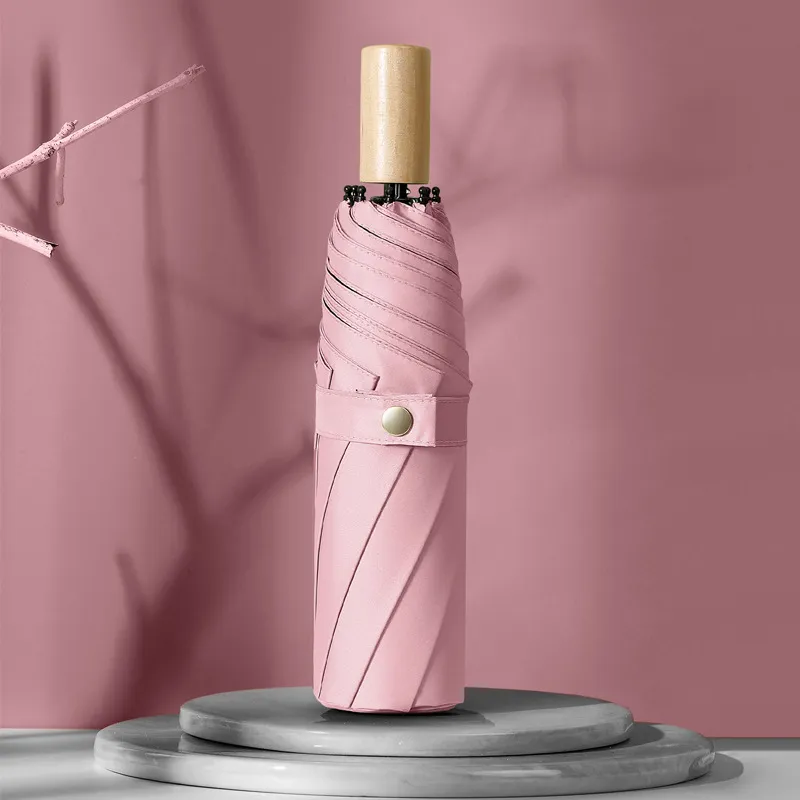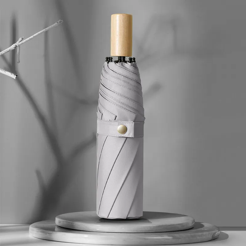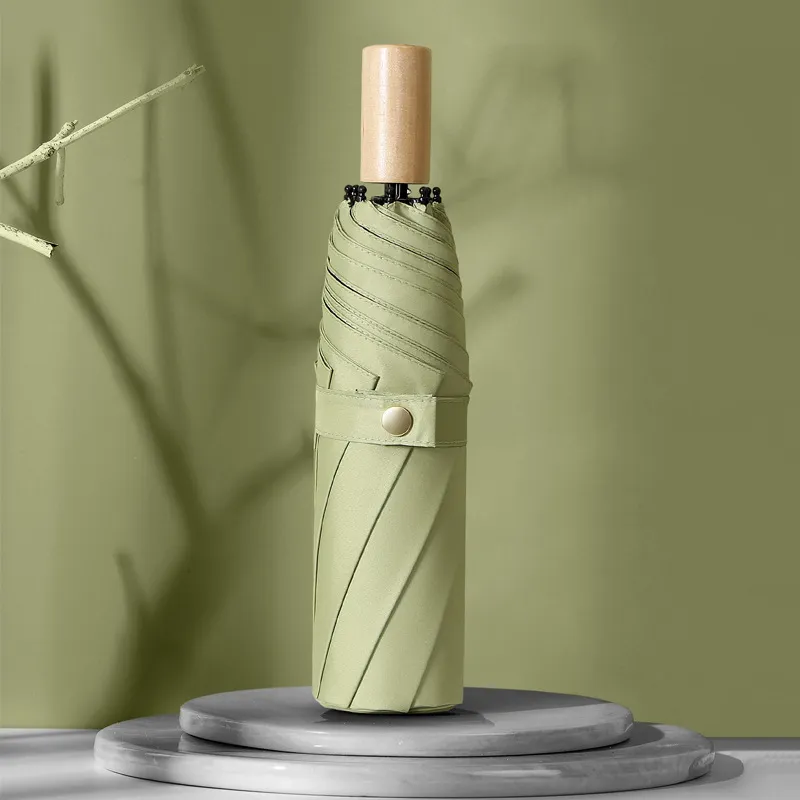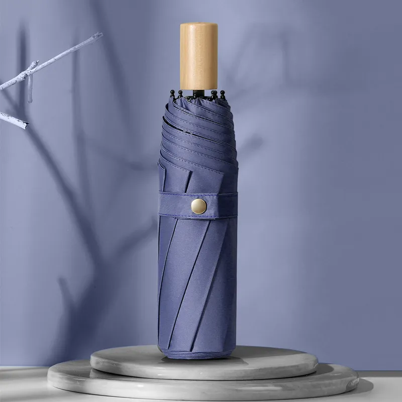 衣都精品- 2023新款三折簡約復古木手柄遮陽傘