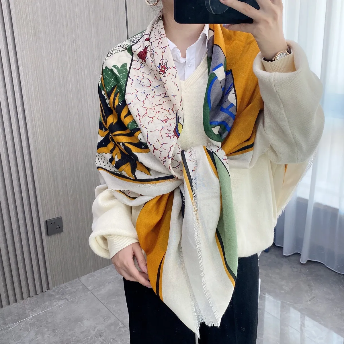 衣都精品- 2023新款名媛氣質四面留鬚輕薄保暖圍巾