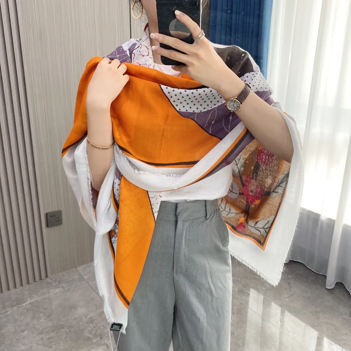 衣都精品- 2023新款時尚新寵新絲緞花卉印花圍巾
