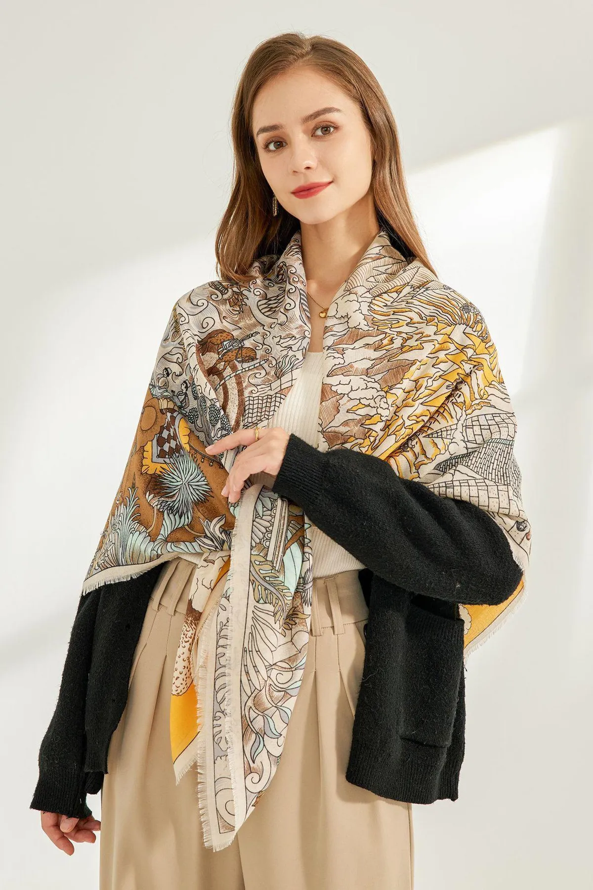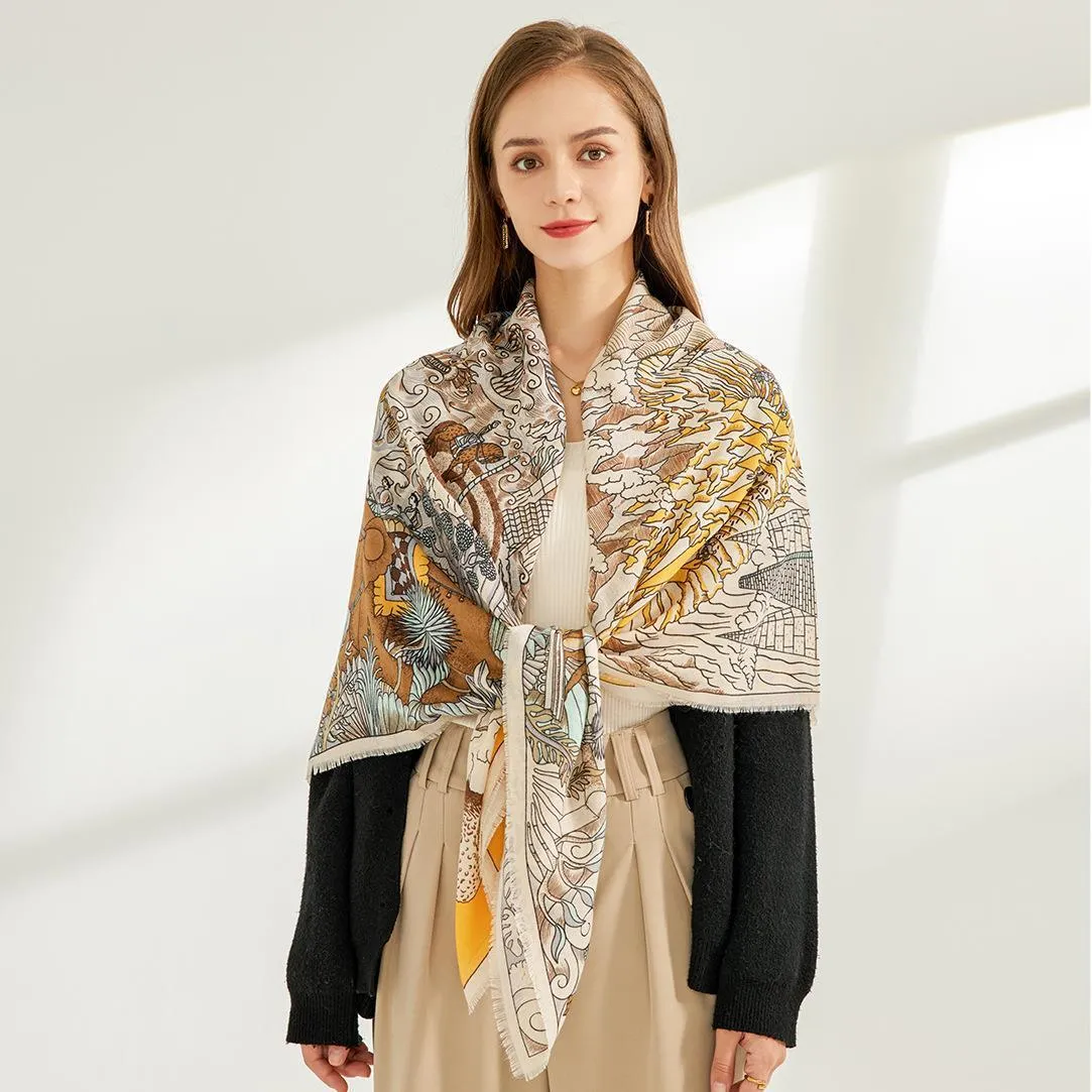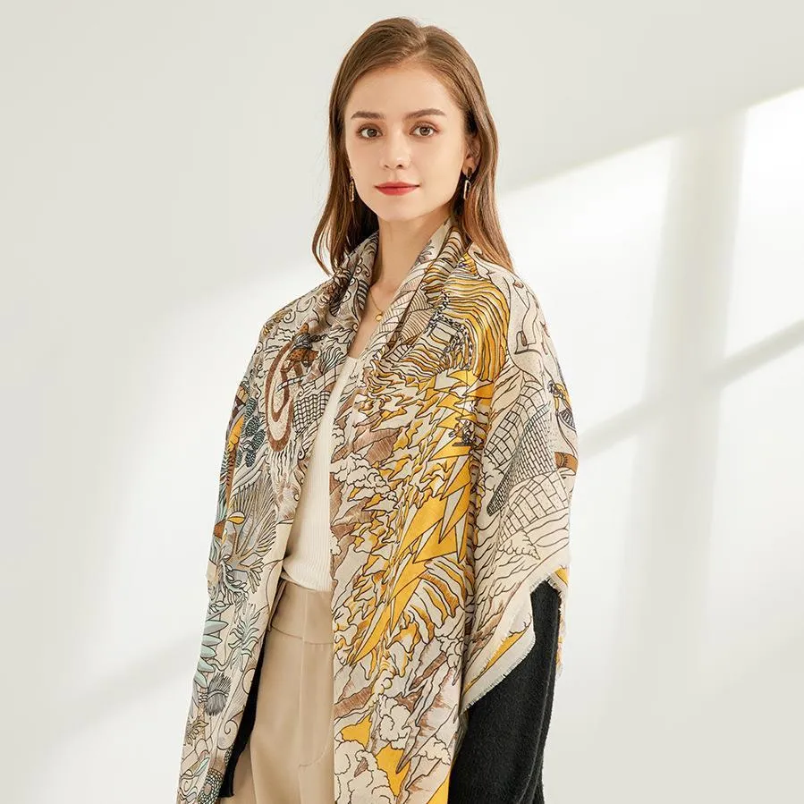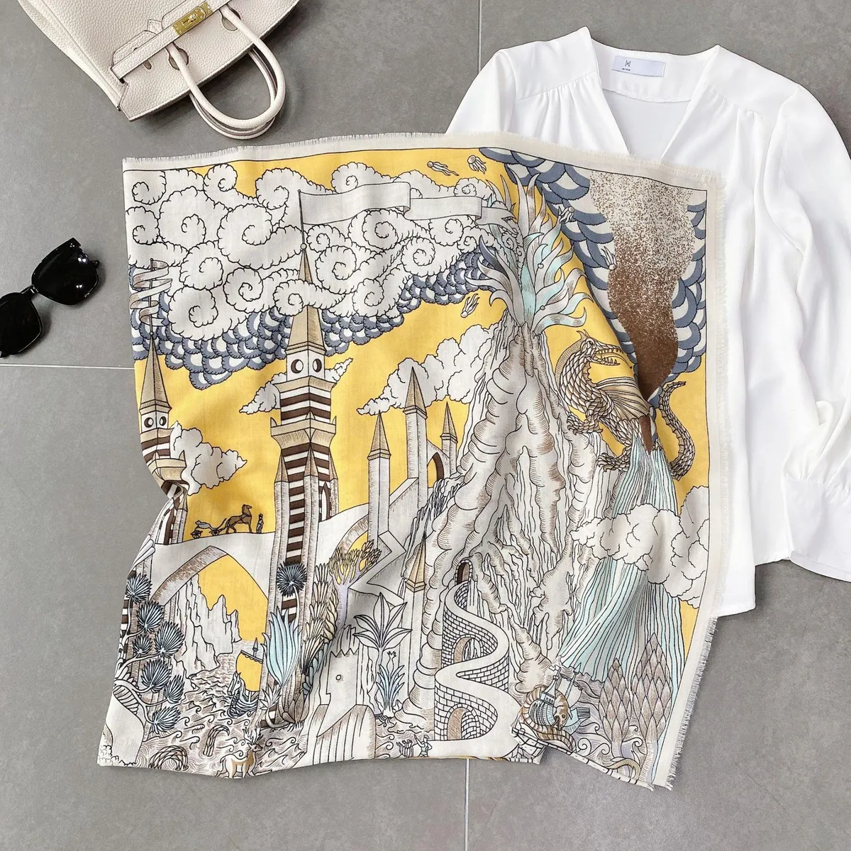 衣都精品- 2023新款130*130祥雲印花棉麻圍巾