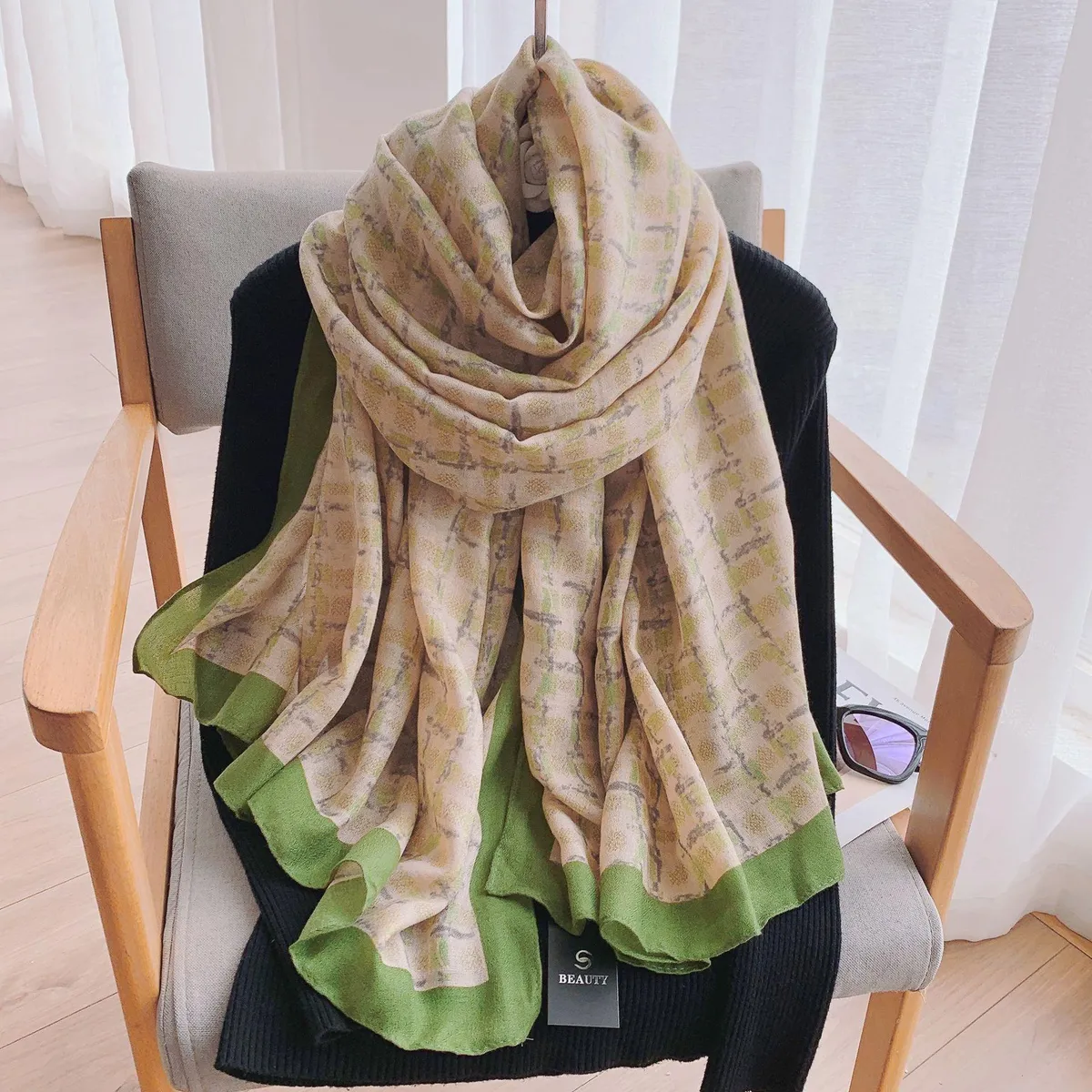 衣都精品- 2023新款名媛氣質四面留鬚輕薄保暖圍巾