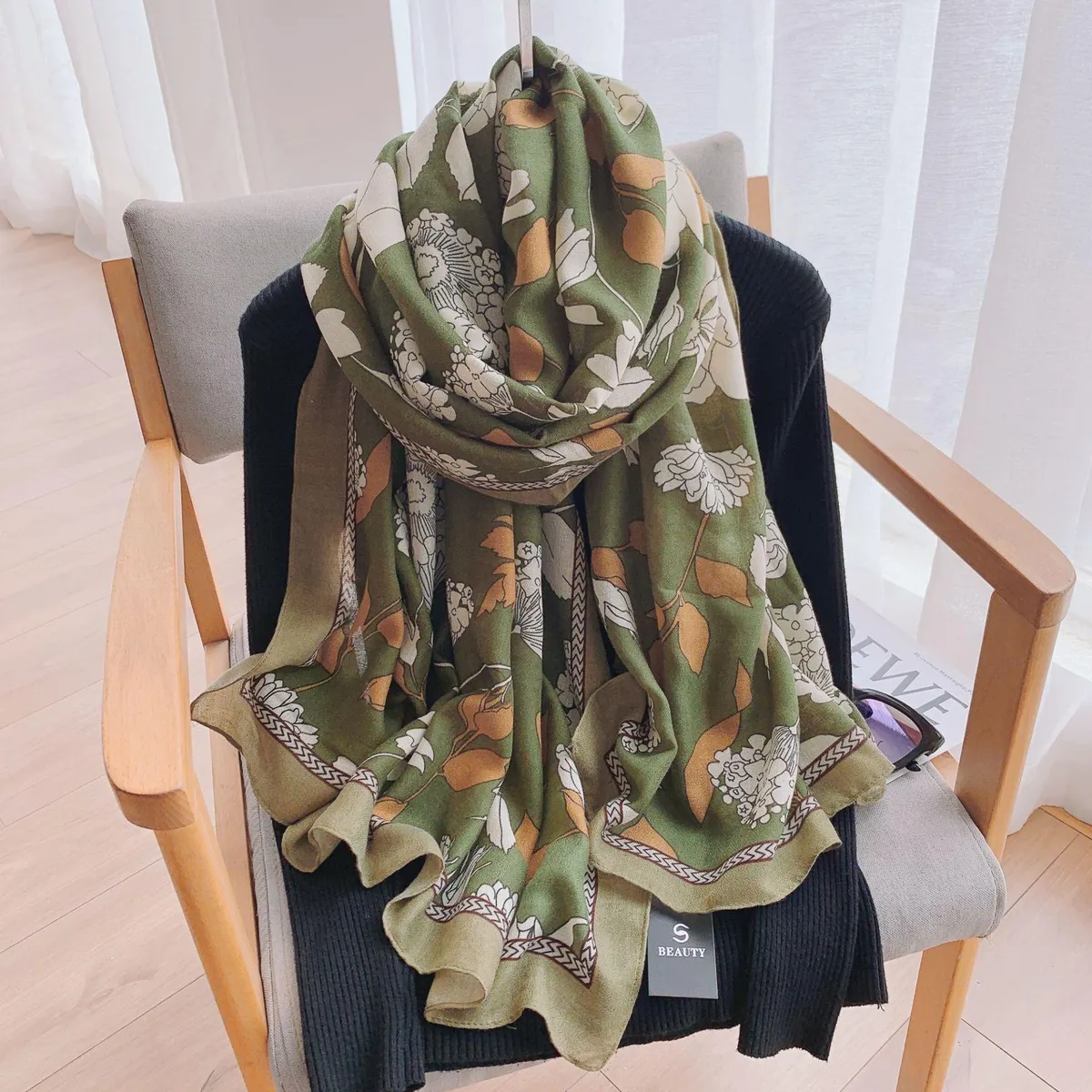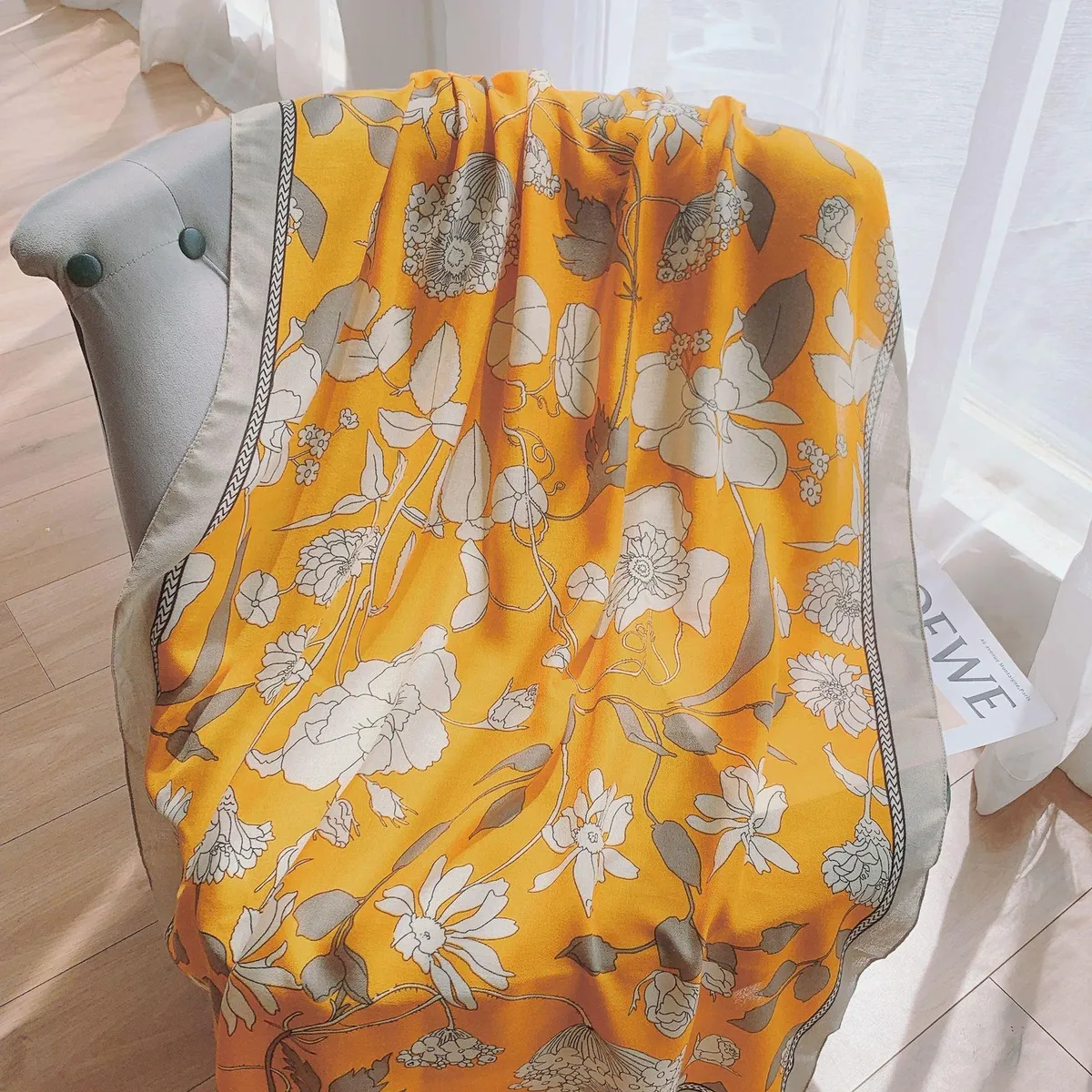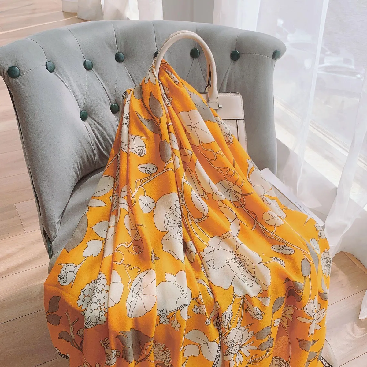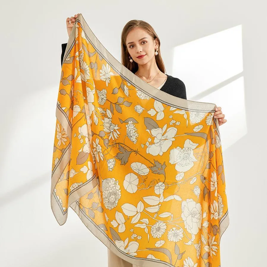 衣都精品- 2023新款130*130祥雲印花棉麻圍巾