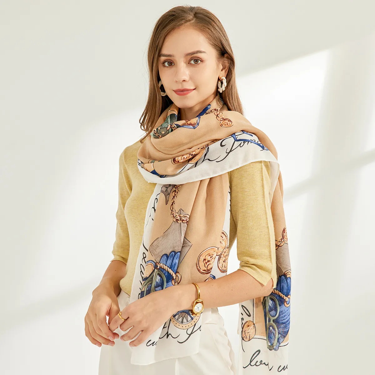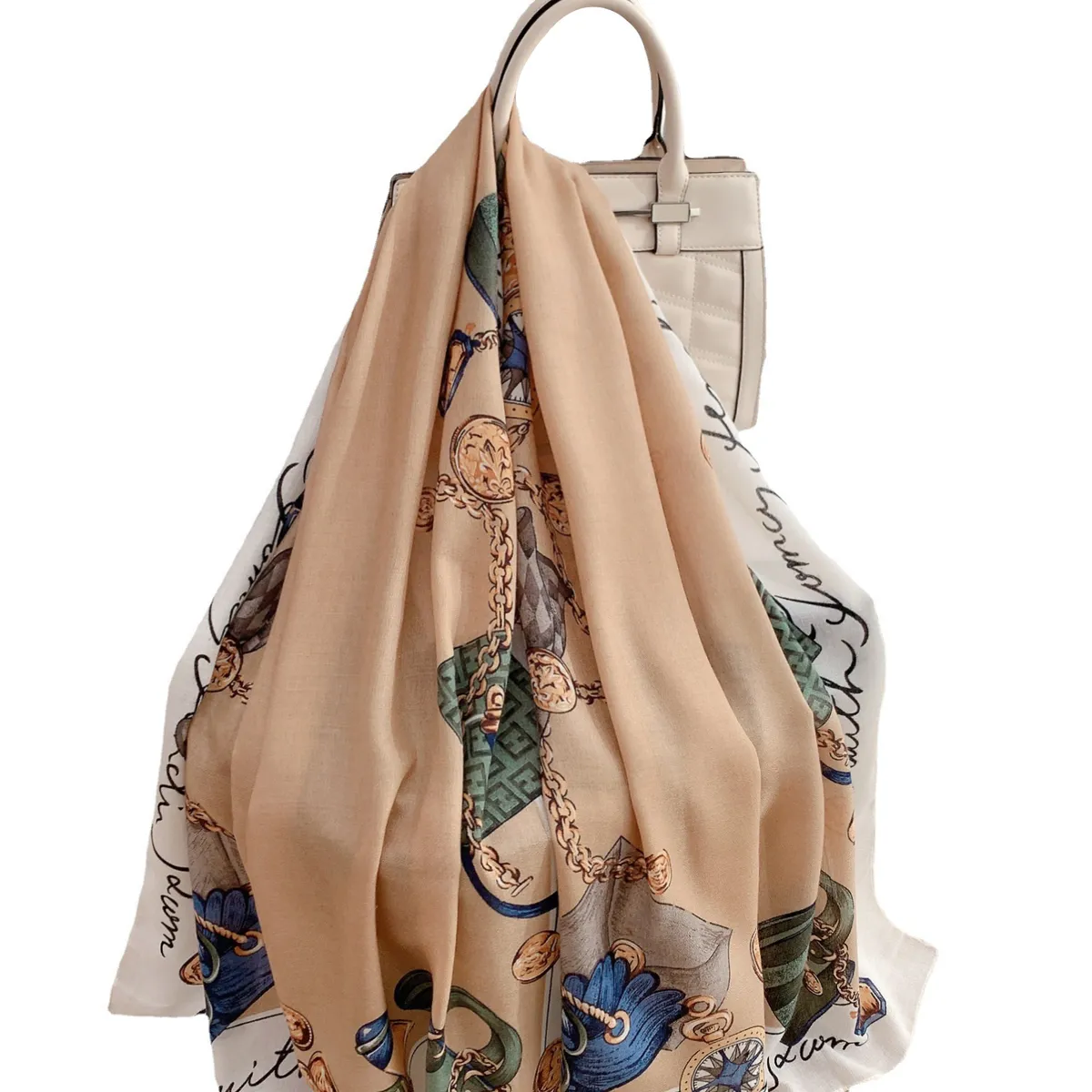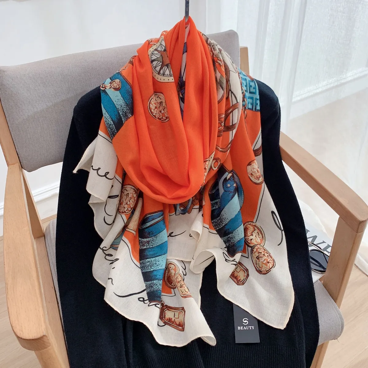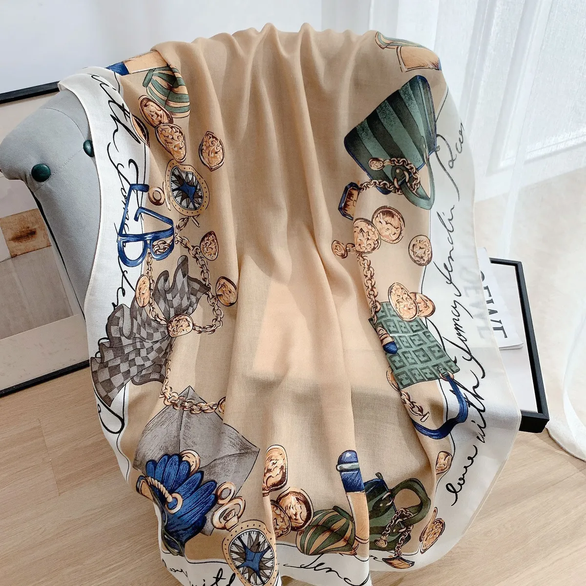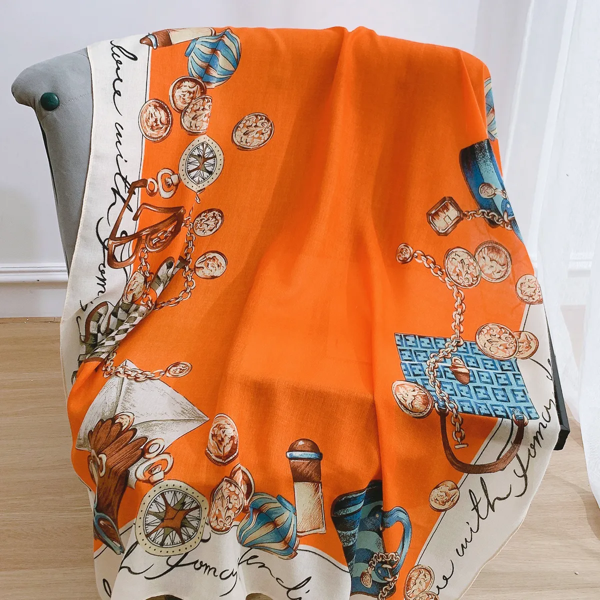 衣都精品- 2023新款130*130祥雲印花棉麻圍巾