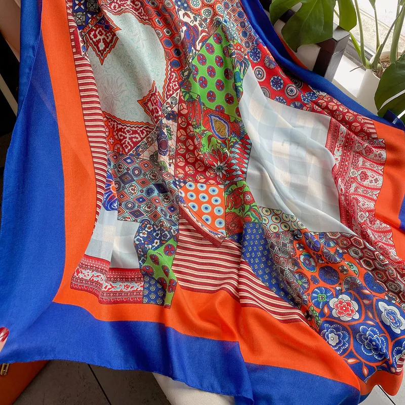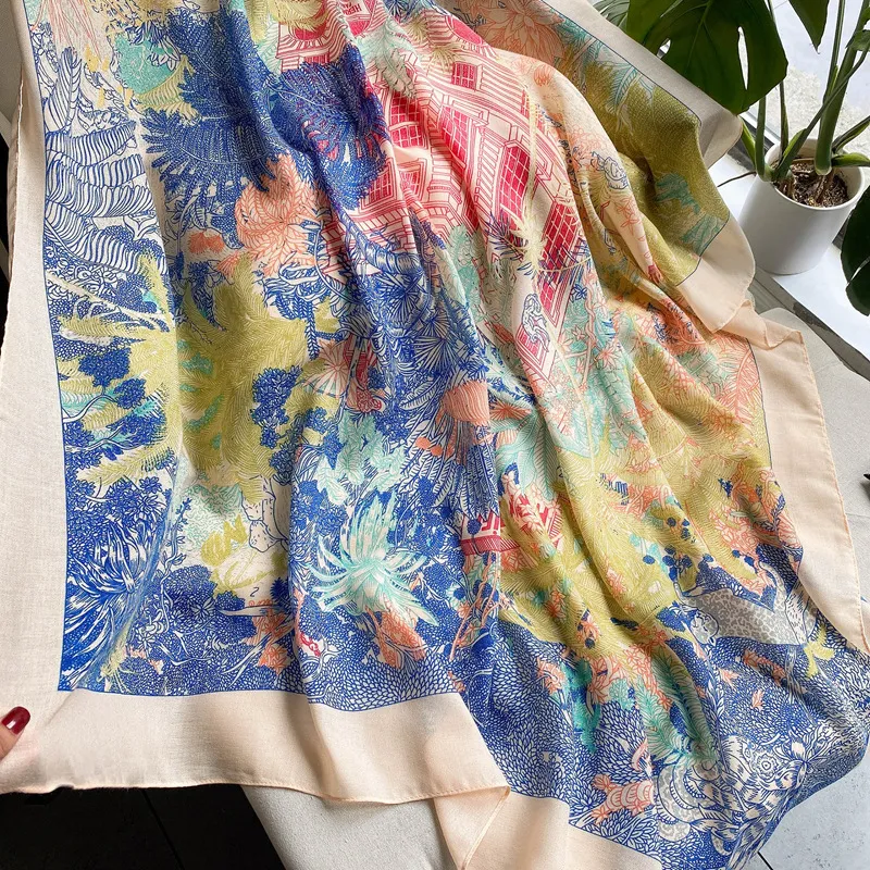 衣都精品- 2023新款韓版時尚植物花卉棉麻手感圍巾