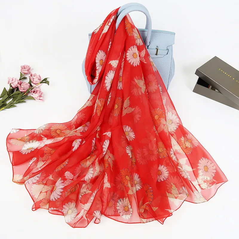 衣都精品- 2023新款小雛菊印花優柔紗圍巾