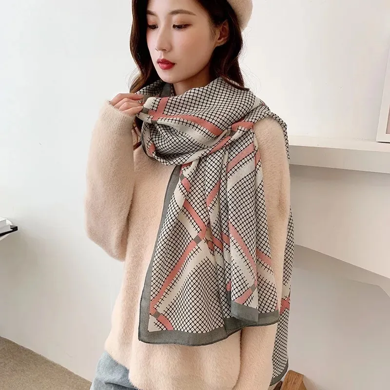衣都精品- 2023新款旅遊出行防曬格子印花圍巾