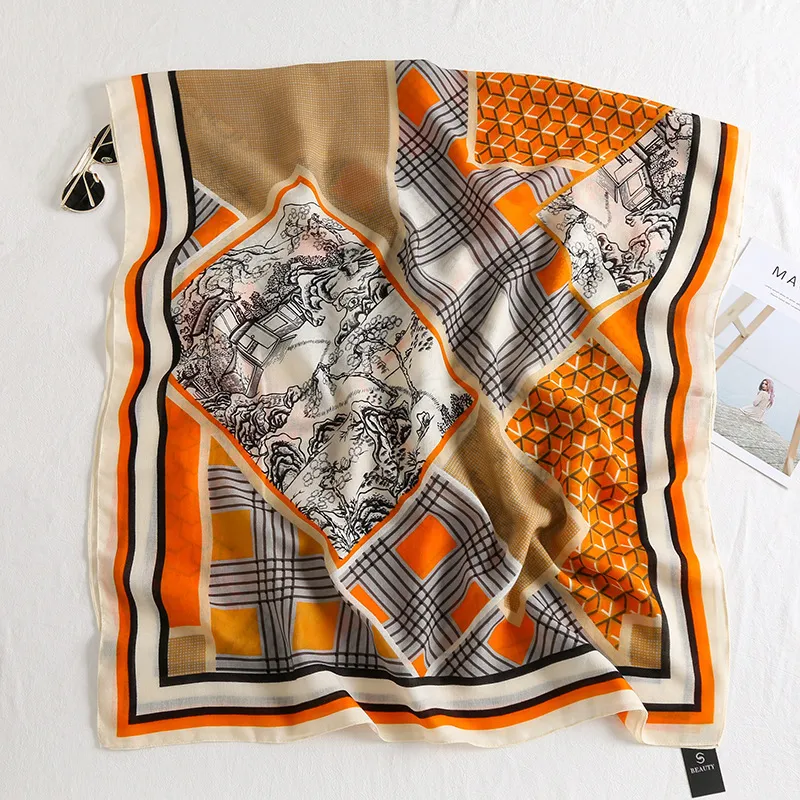 衣都精品- 2023新款旅遊出行防曬格子印花圍巾