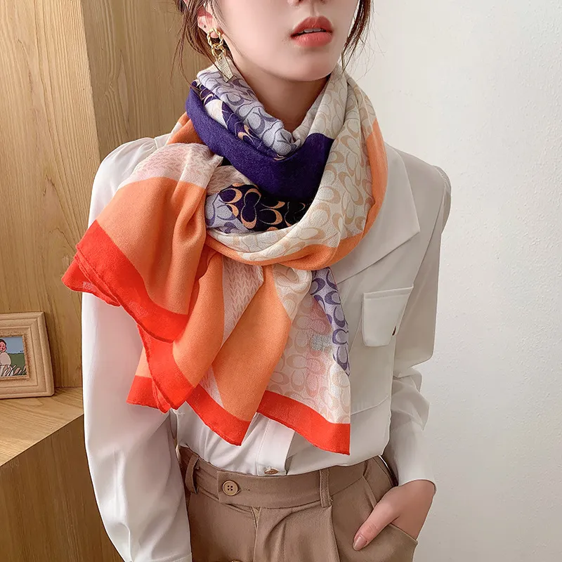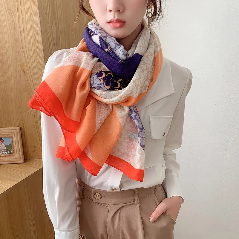 衣都精品- 2023新款優雅名媛氣質字母印花圍巾