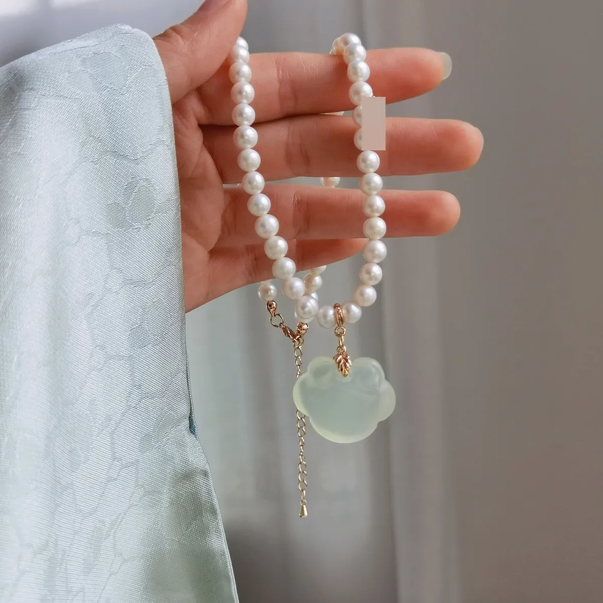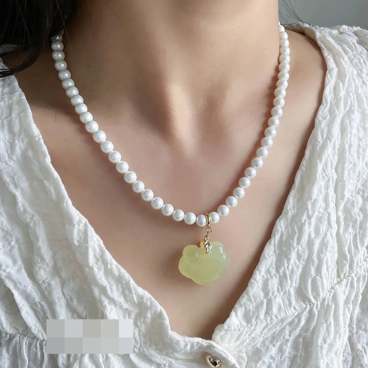 衣都精品- 2023新款復古仙氣岫玉長命鎖項鍊