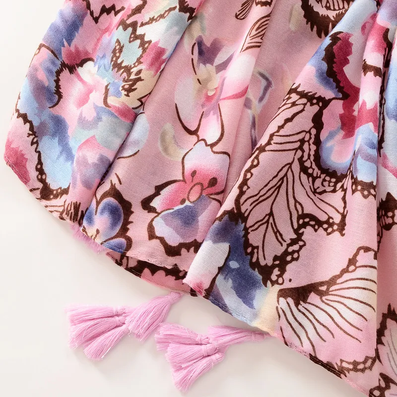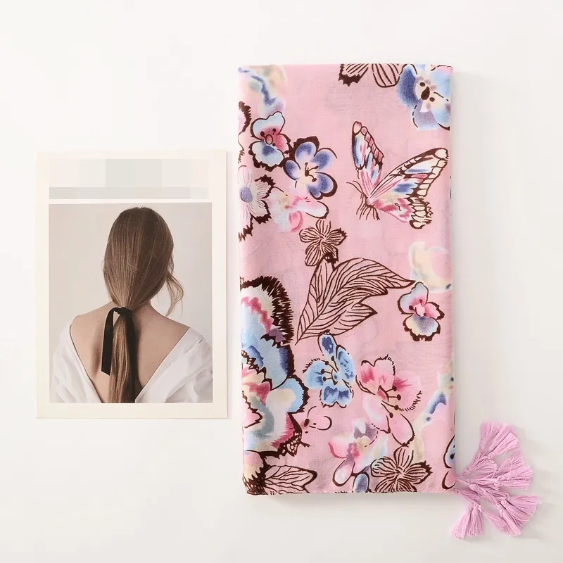 衣都精品- 2023新款清新文藝熱帶植物蝴蝶圍巾