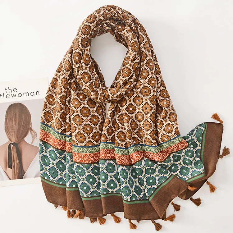 衣都精品- 2023新款復古風時尚百搭車輪花圍巾