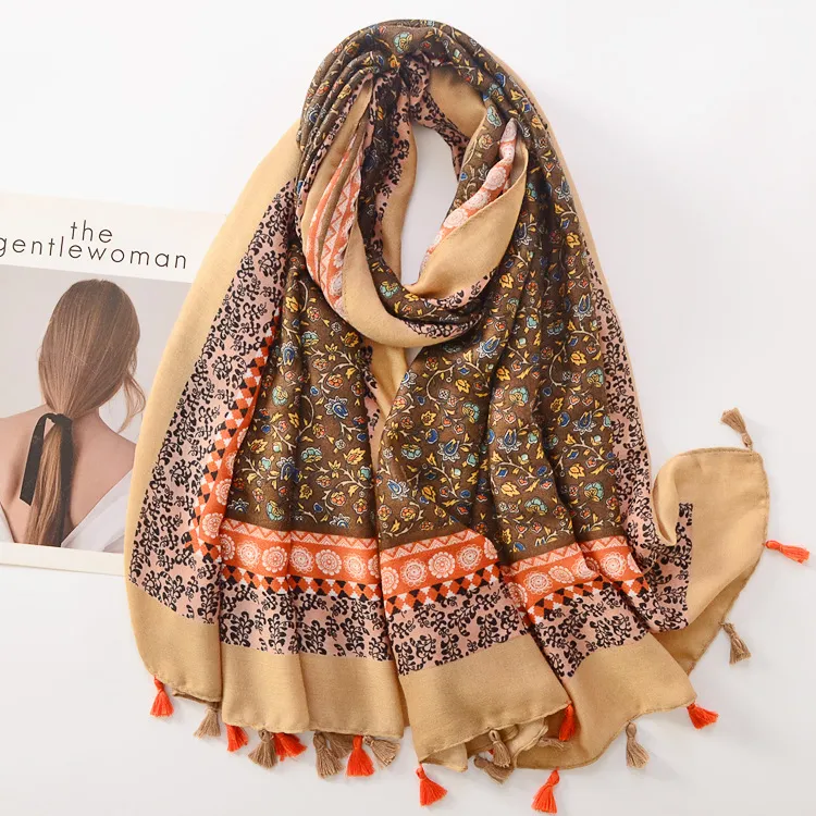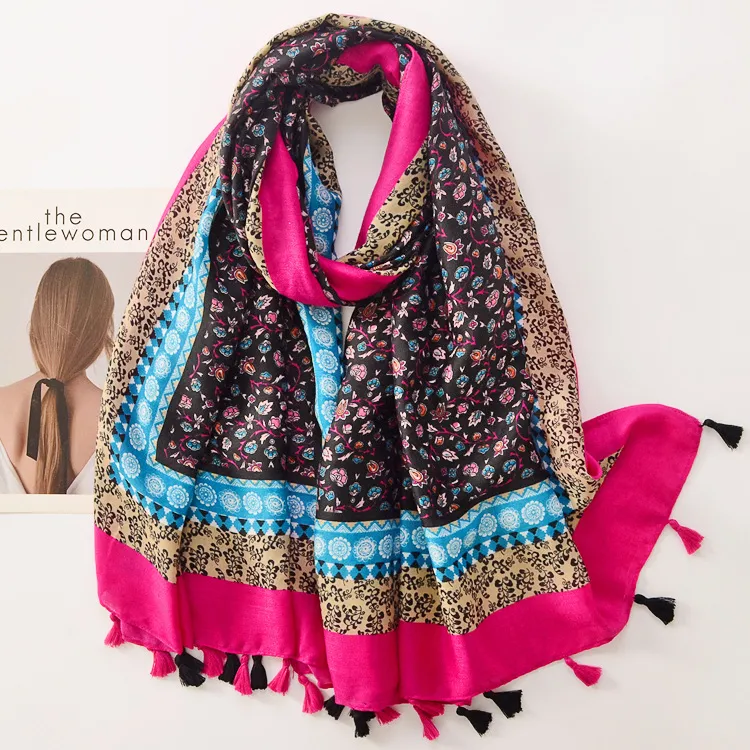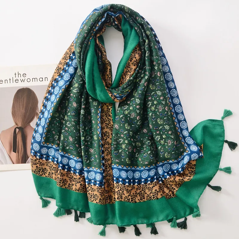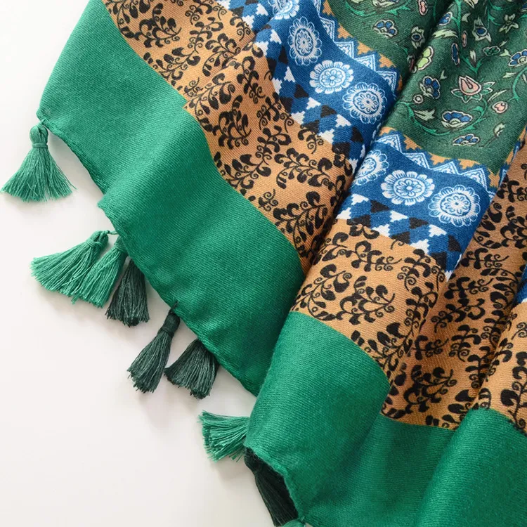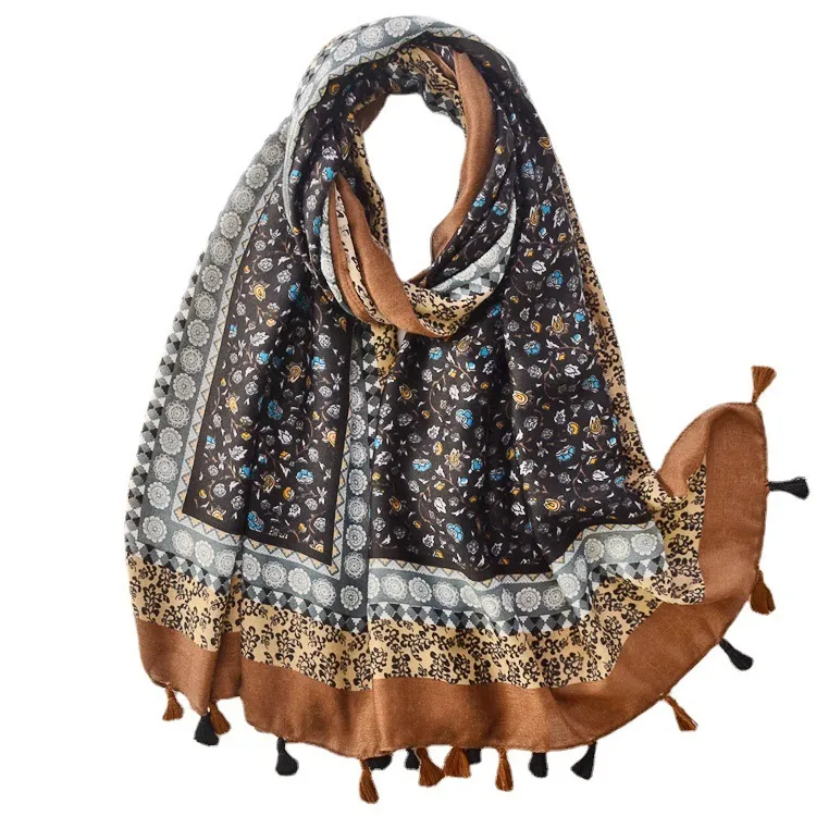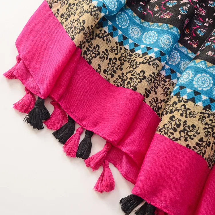 衣都精品- 2023新款碎花拼接薄款柔軟流蘇百搭圍巾