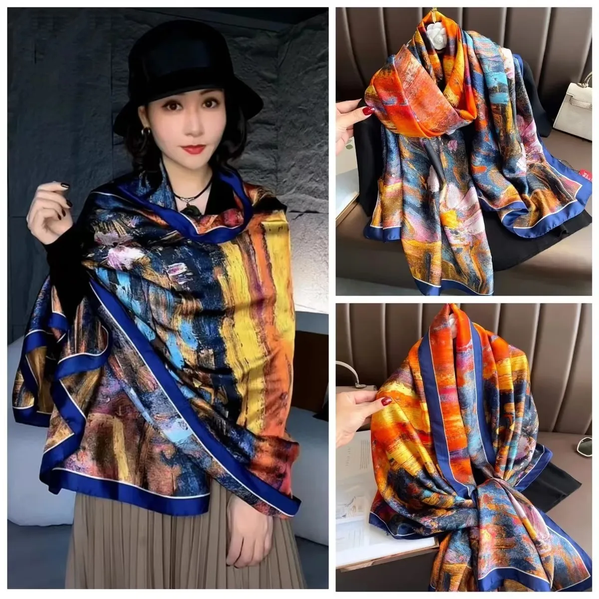衣都精品- 2023新款90*180印花麗錦緞長巾圍巾