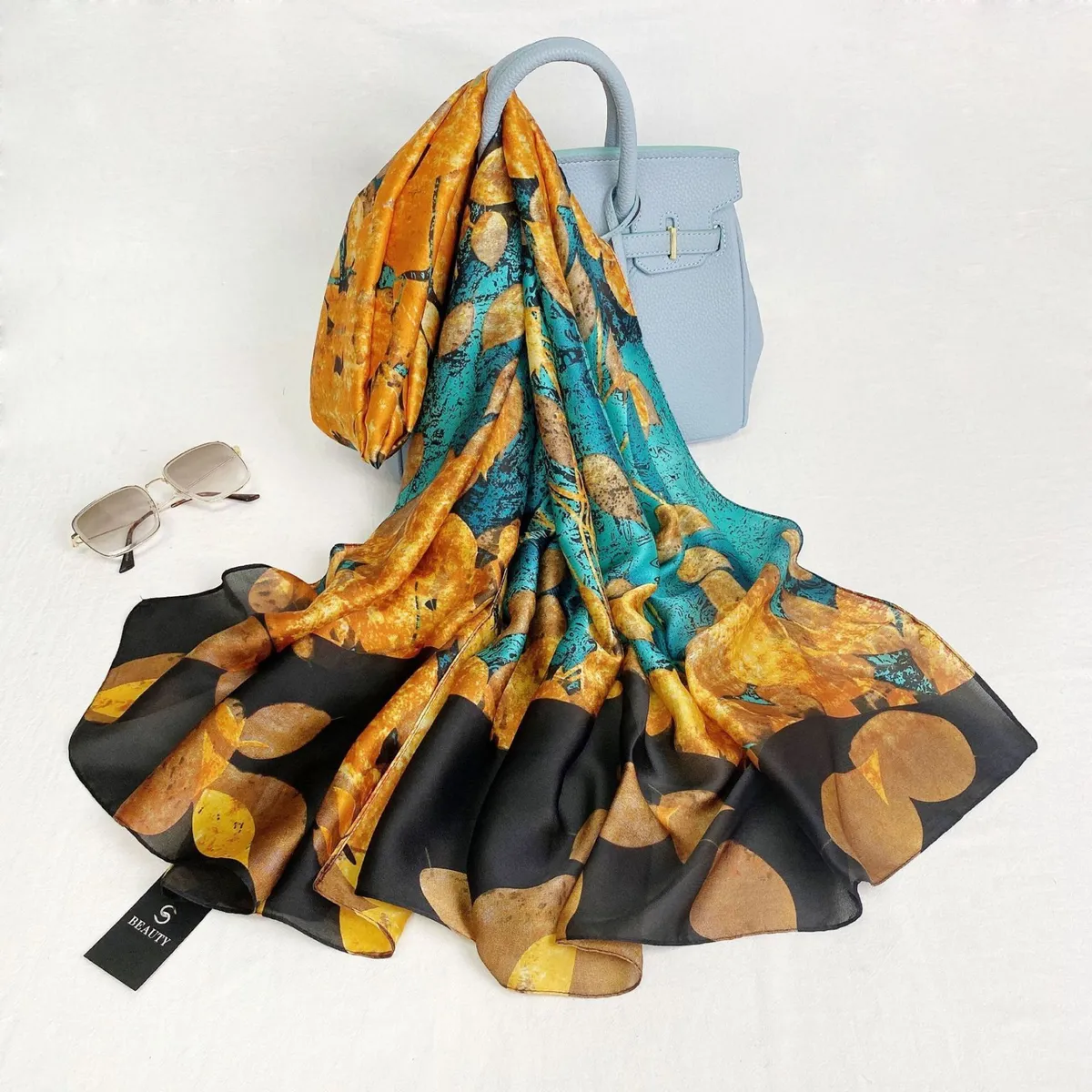 衣都精品- 2023新款90*180印花麗錦緞長巾圍巾