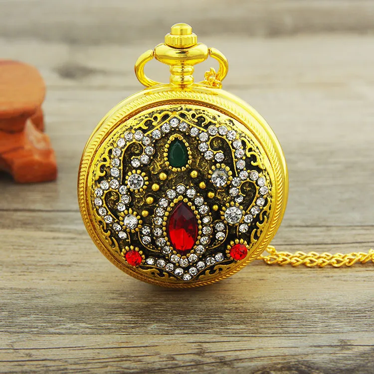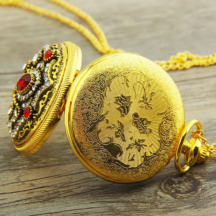 衣都精品- 2023新款復古紅鑽創意翻蓋懷錶