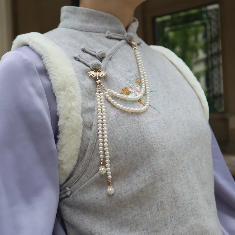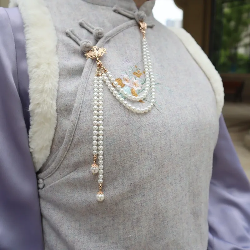 衣都精品- 2023新款復古百搭淡水珍珠旗袍壓襟胸飾