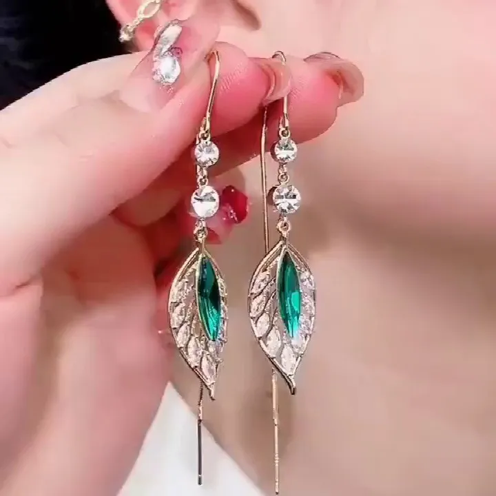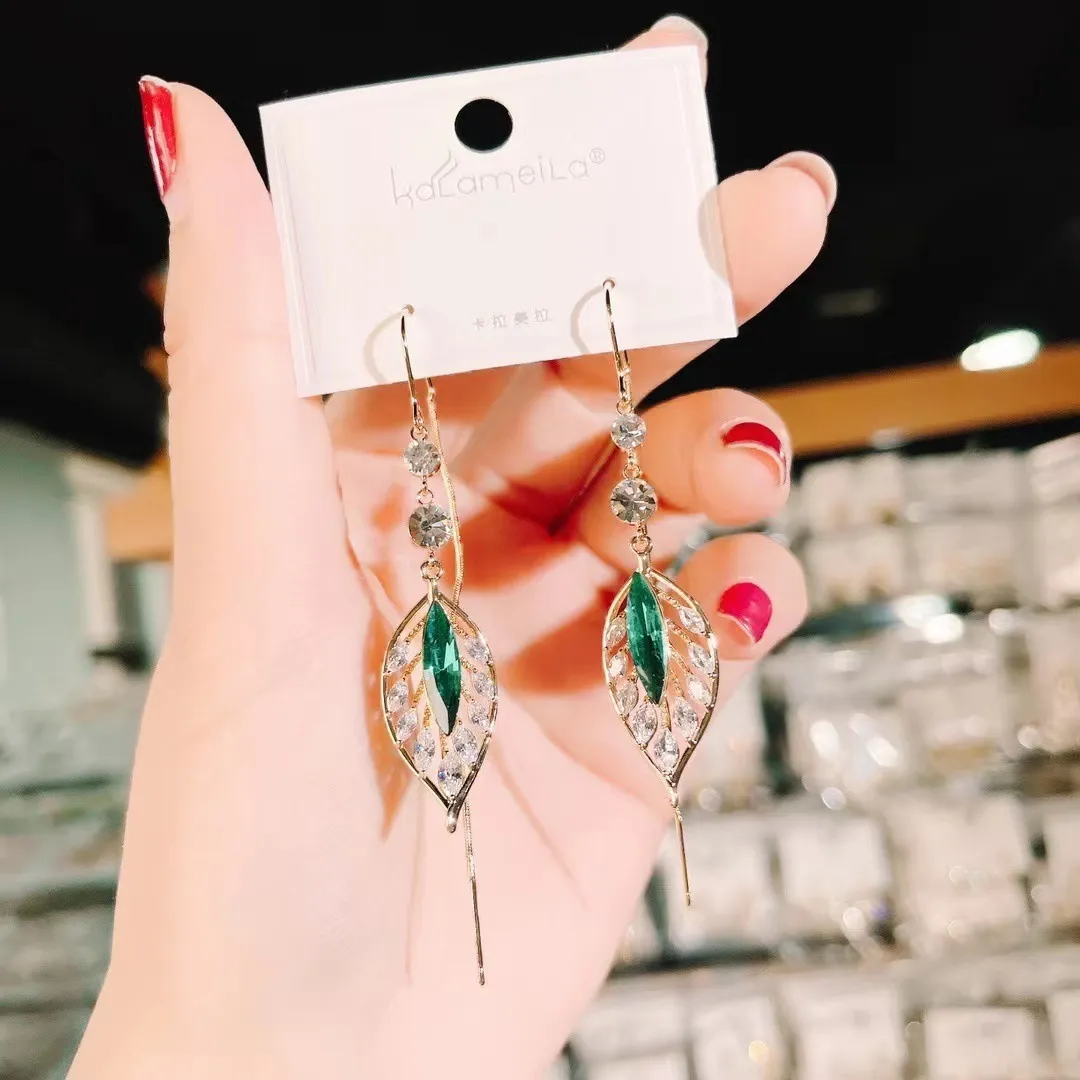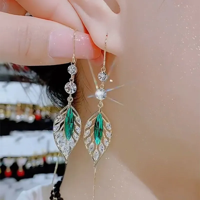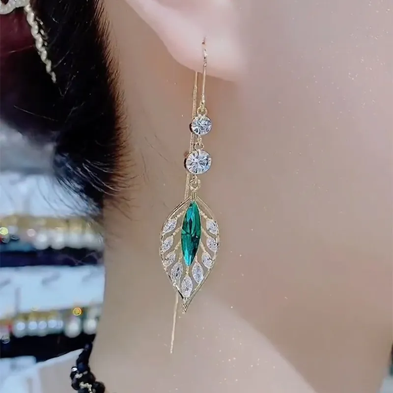 衣都精品- 2023新款高級感輕奢藍色鋯石樹葉耳環