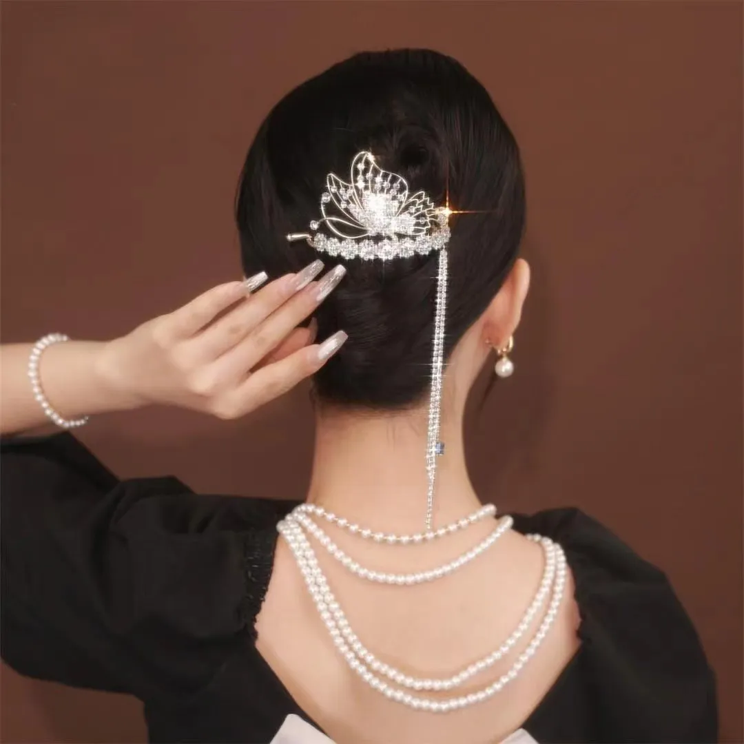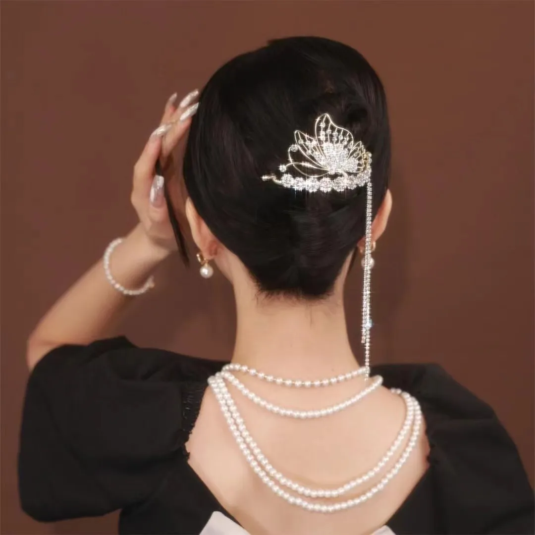 衣都精品- 2023新款時尚精緻蝴蝶流蘇扭扭夾髮飾
