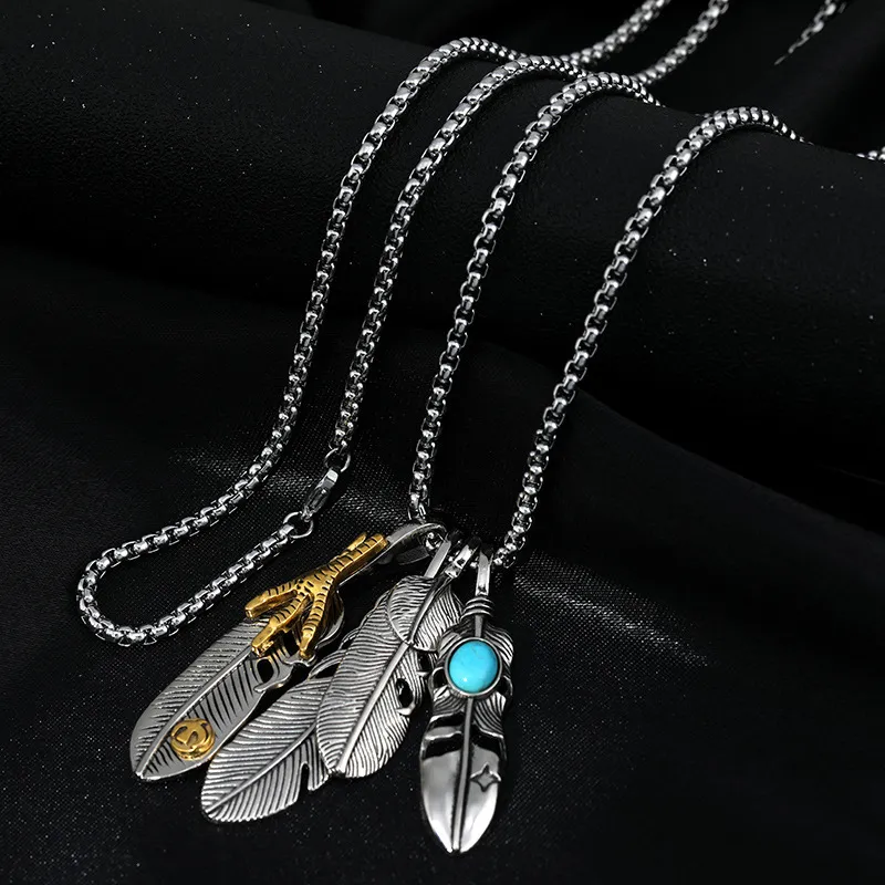 衣都精品- 2023新款情侶嘻哈鷹爪羽毛項鍊