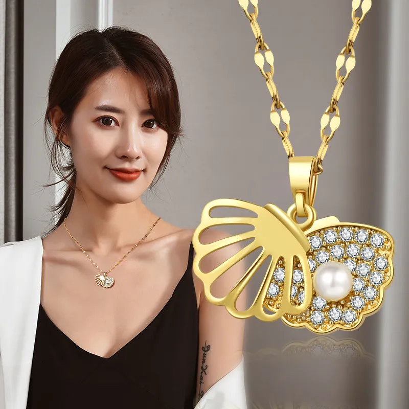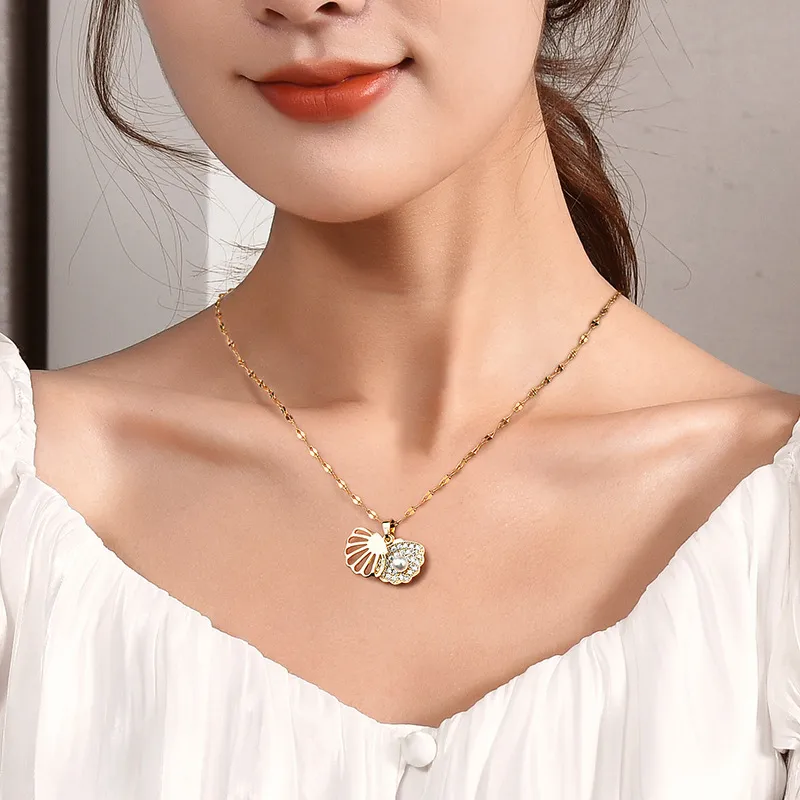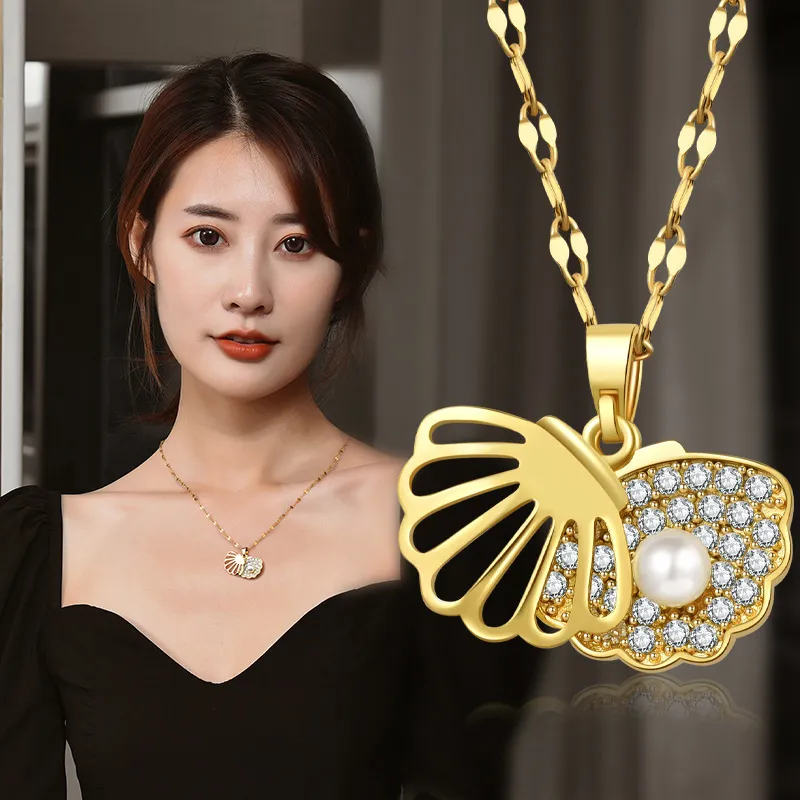 衣都精品- 2023新款微鑲貝殼扇形珍珠項鍊