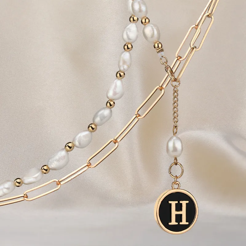 衣都精品- 2023新款韓版嘻哈字母H珍珠流蘇項鍊