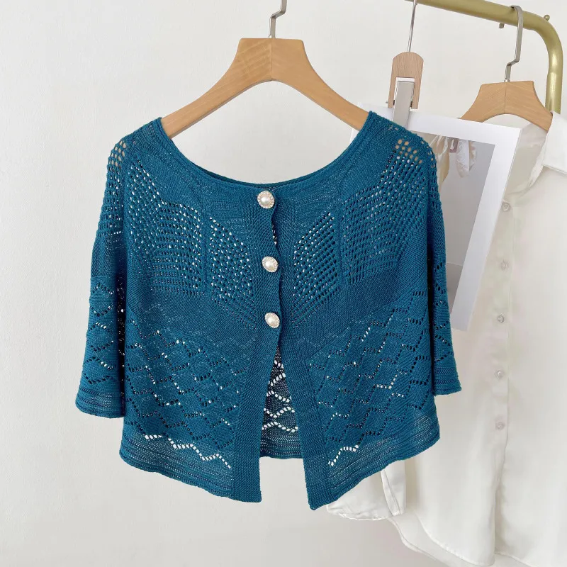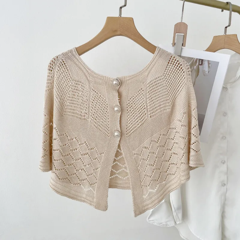 衣都精品- 2023新款薄款網紅珍珠扣旗袍披肩
