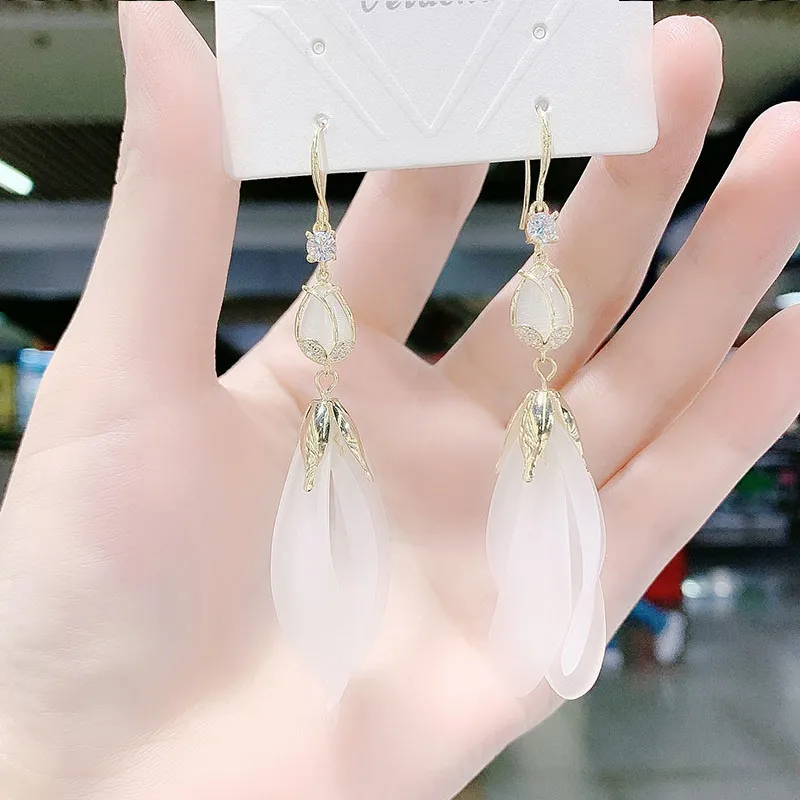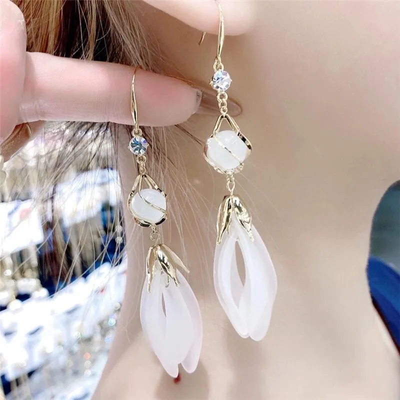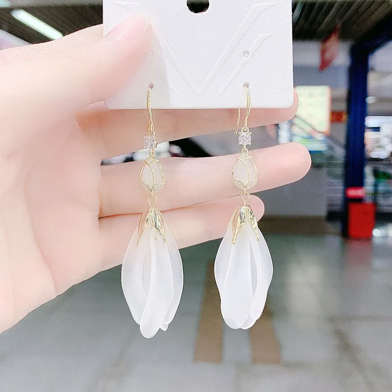 衣都精品- 2023新款長款白花瓣流蘇顯瘦耳墜