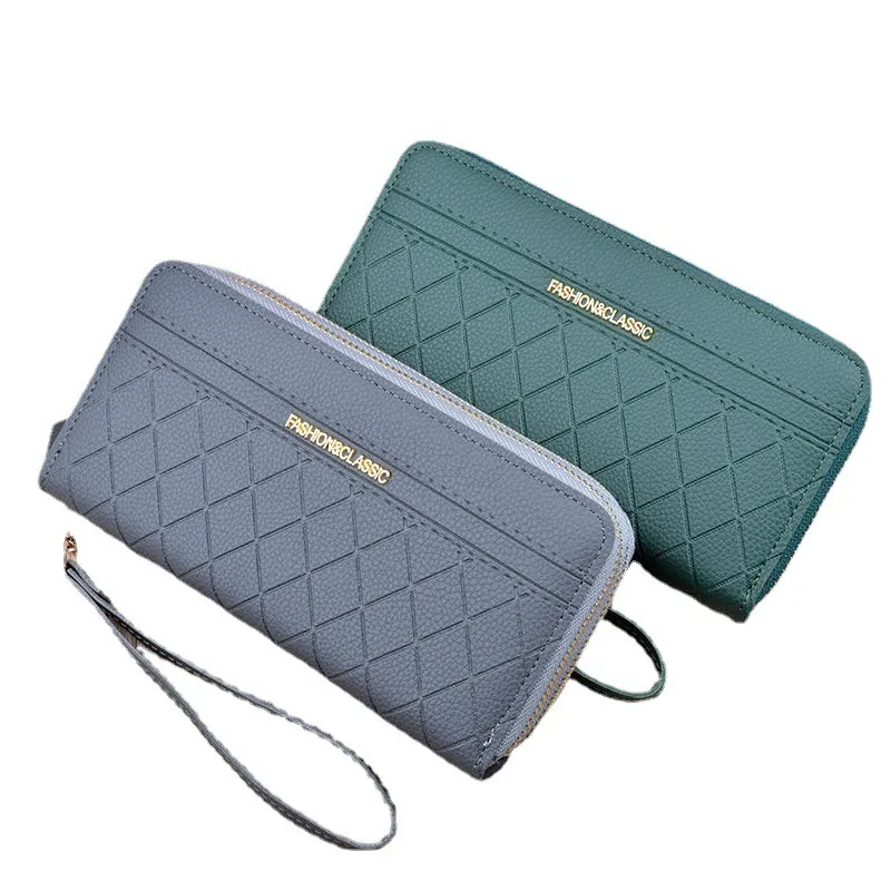 衣都精品- 2023新款時尚格紋大容量雙拉鍊長款錢包