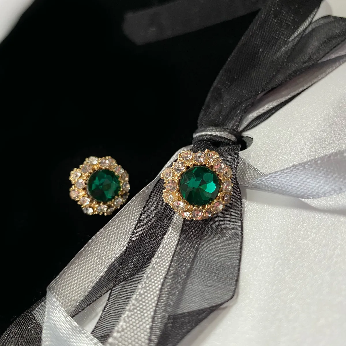 衣都精品- 2023新款氣質綠寶石鑲鑽耳環