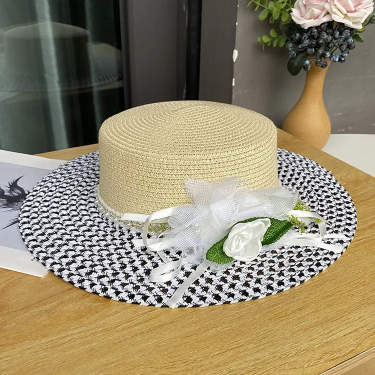 衣都精品- 2023新款小香風草編大簷平頂草帽