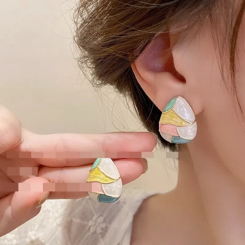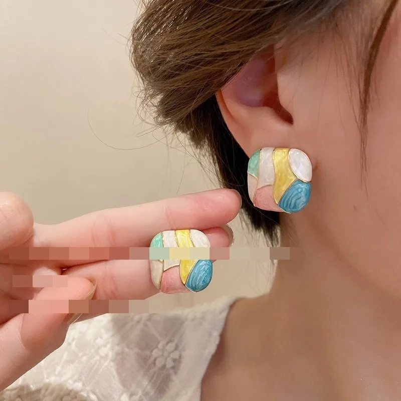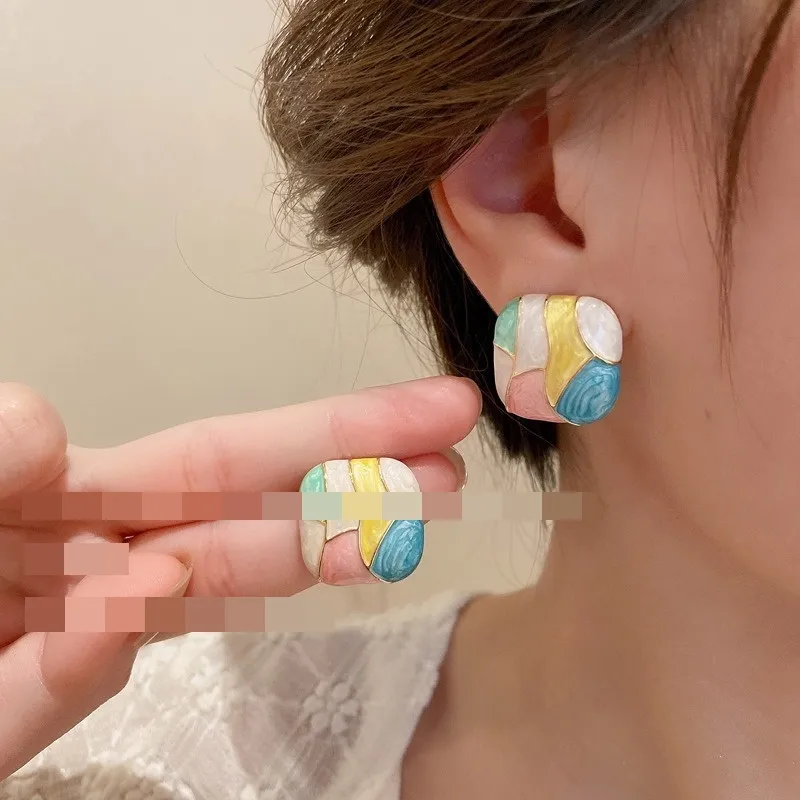 衣都精品- 2023新款時尚甜美彩色滴油耳環