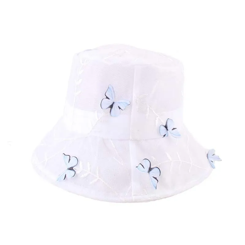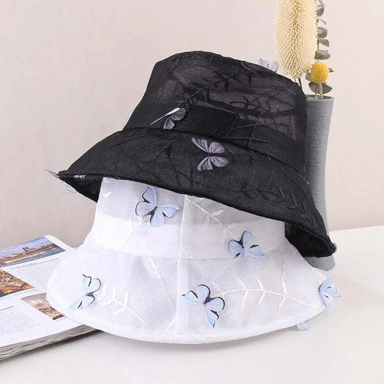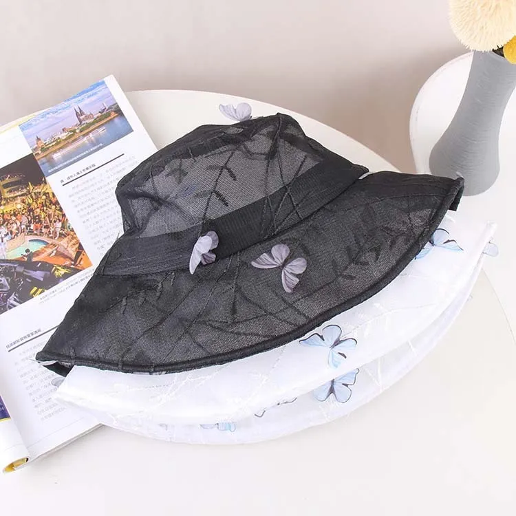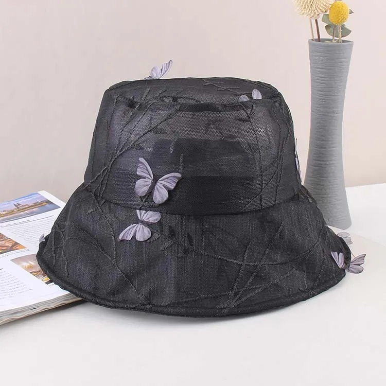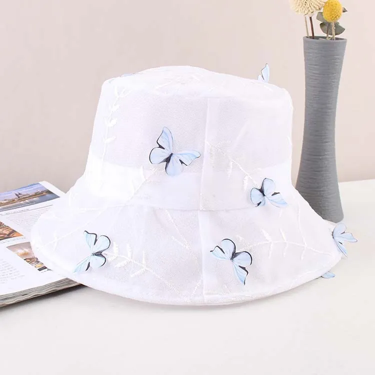 衣都精品- 2023新款韓國蕾絲綢緞立體蝴蝶網眼漁夫帽
