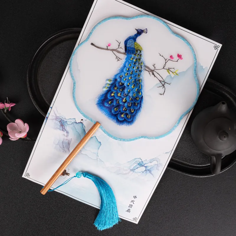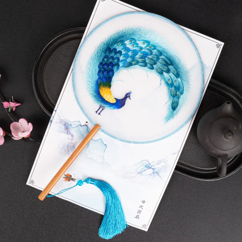 產品顏色 : 雙面刺繡-孔雀,雙面刺繡-八瓣-孔雀登枝