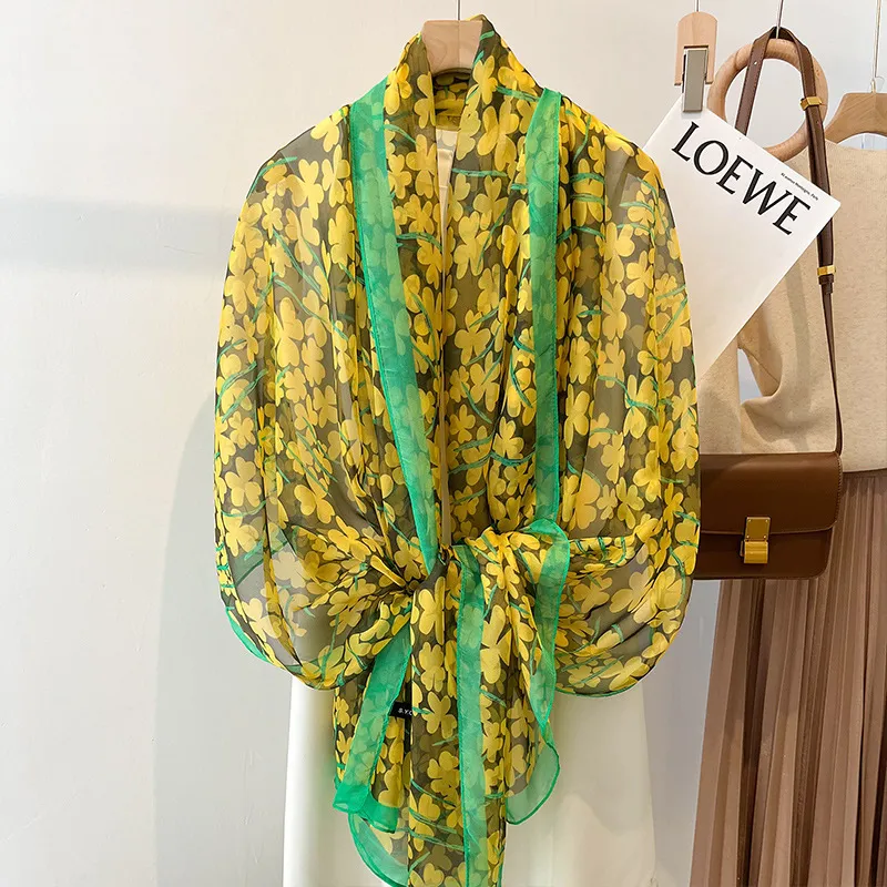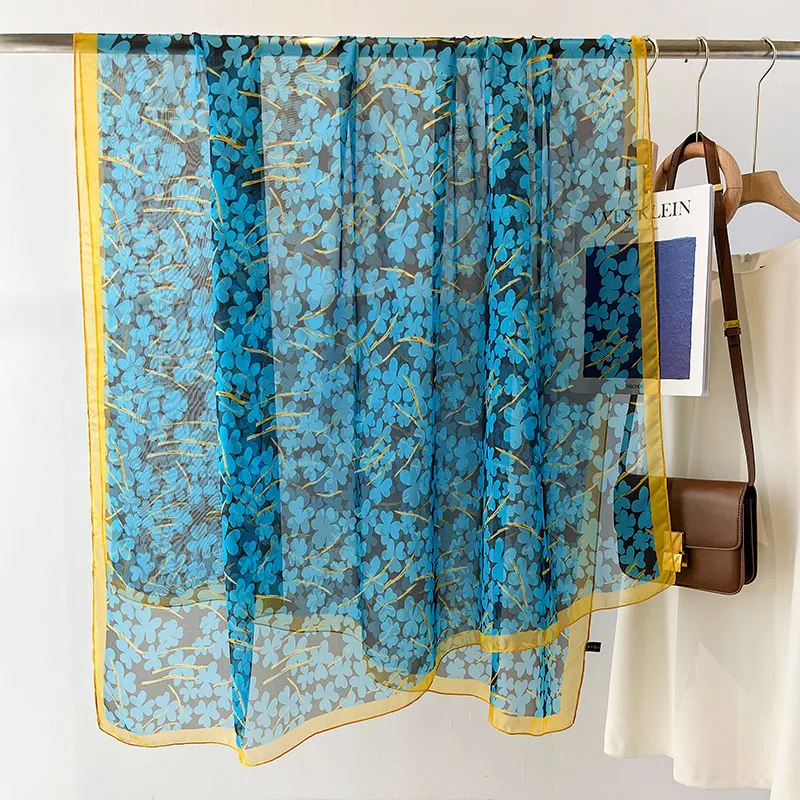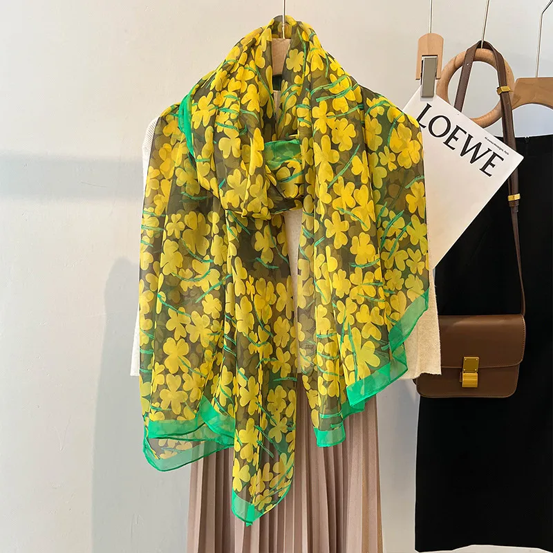 衣都精品- 2023新款洋氣超大四葉碎花絲巾